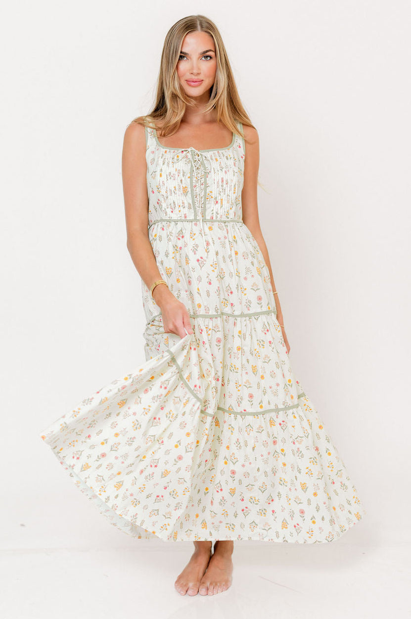 Shailene Tiered Floral Bustier Maxi Dress in Vintage Cream