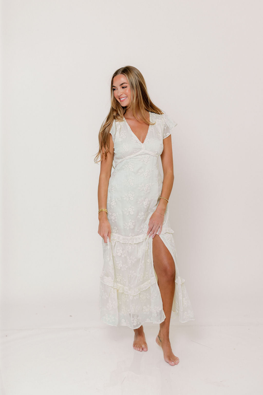 Eleanora Lace Embroidered Tiered Maxi Dress in Buttercream