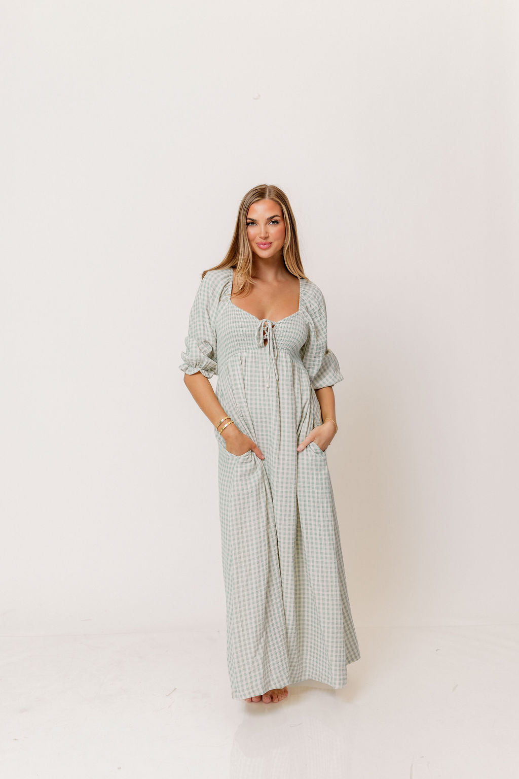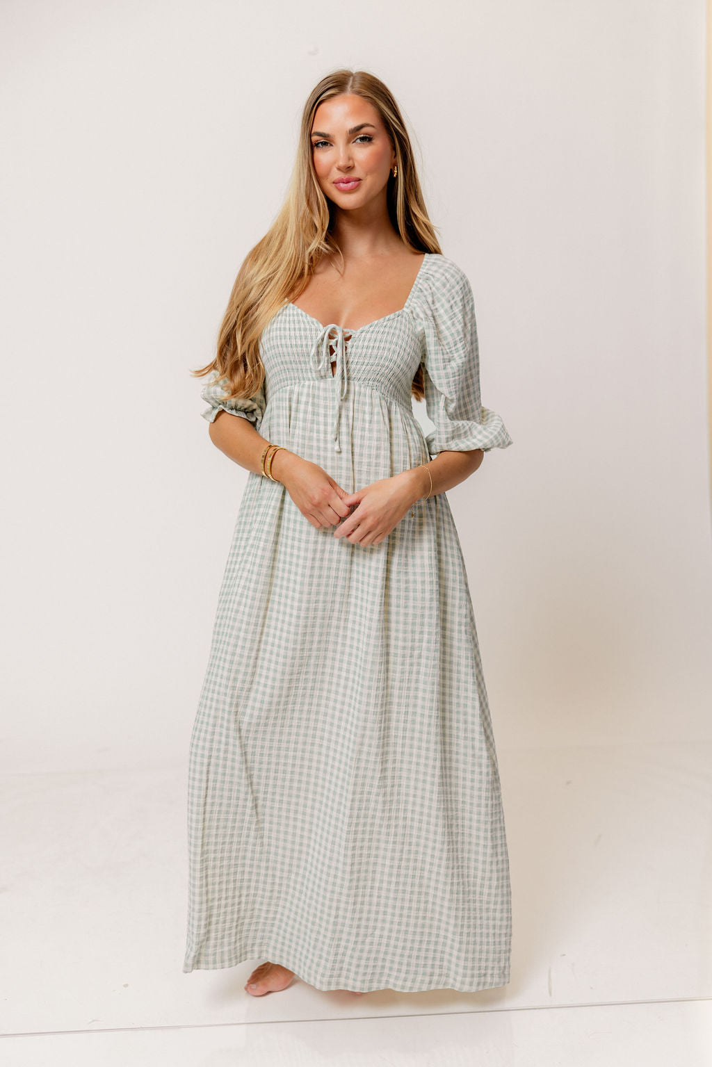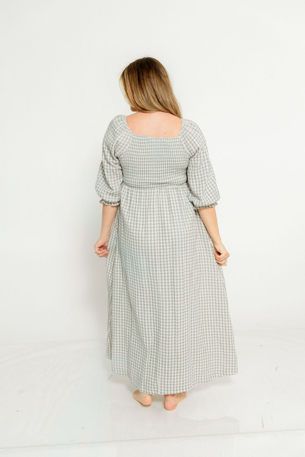 Cecilia 100% Cotton Smocked Maxi Dress in Aqua Plaid (Lined) - Bump Friendly *2/11 PRE-ORDER*