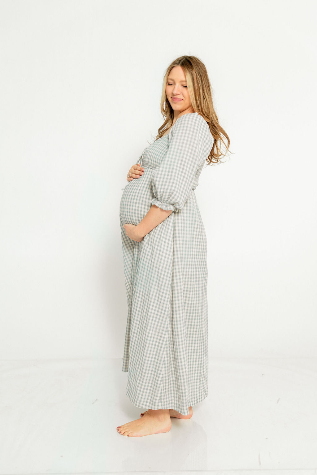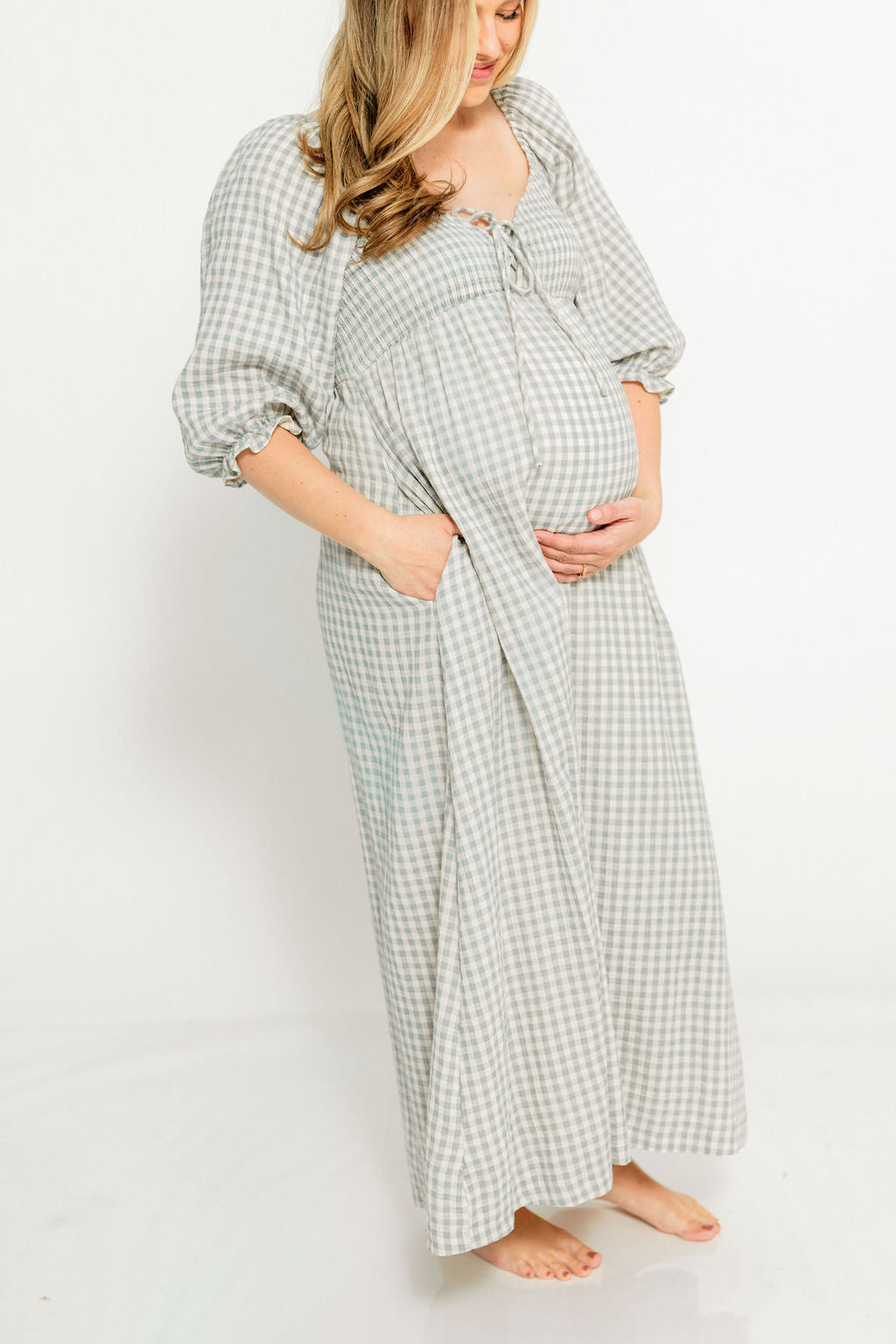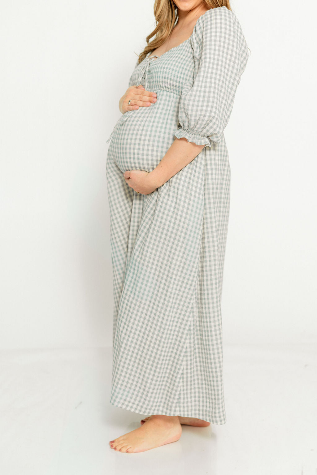Cecilia 100% Cotton Smocked Maxi Dress in Aqua Plaid (Lined) - Bump Friendly *2/11 PRE-ORDER*