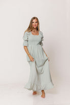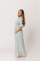 Sienna 100% Cotton Puff Sleeve Maxi Dress in Aqua Plaid (Lined) - Bump Friendly *2/12 PRE-ORDER*