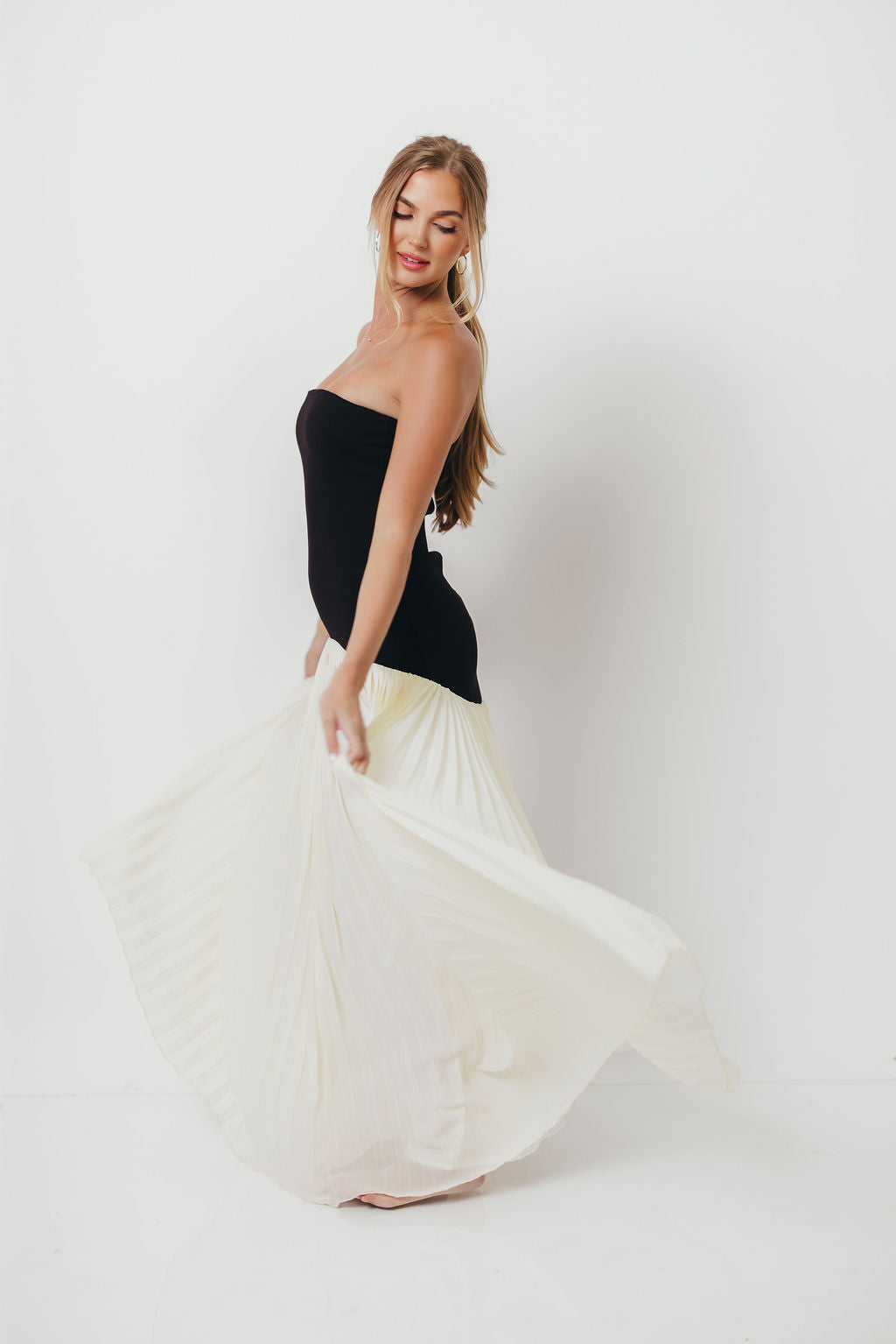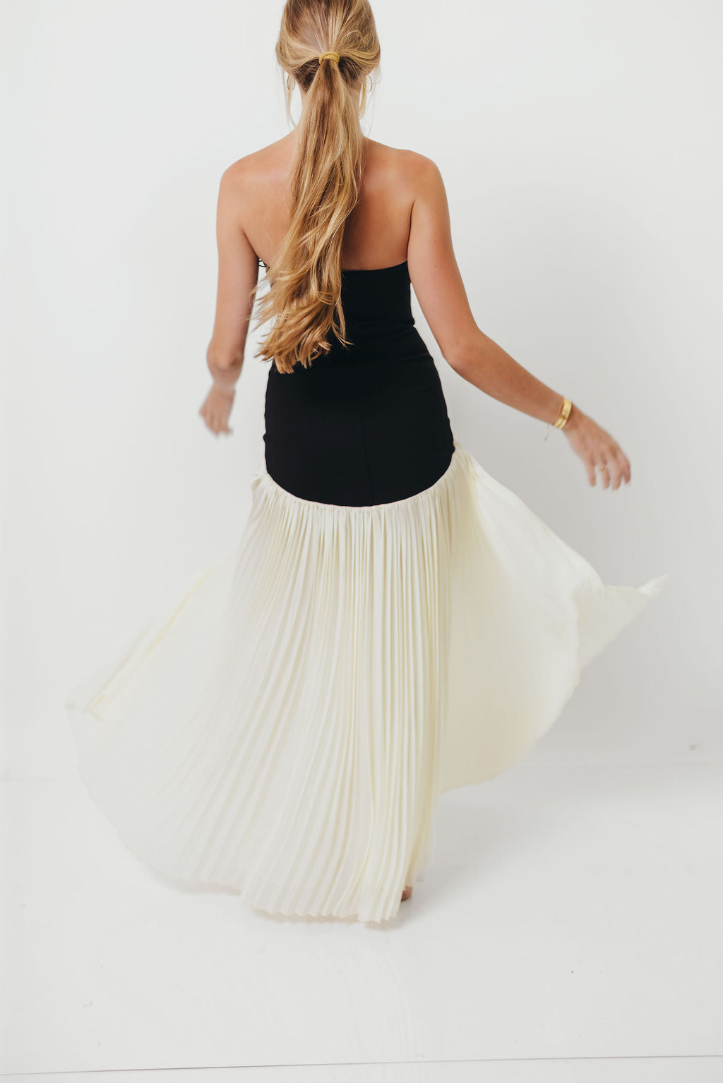 Litzy Strapless Fit Bodice Pleated Skirt Mix Maxi Dress in Cream