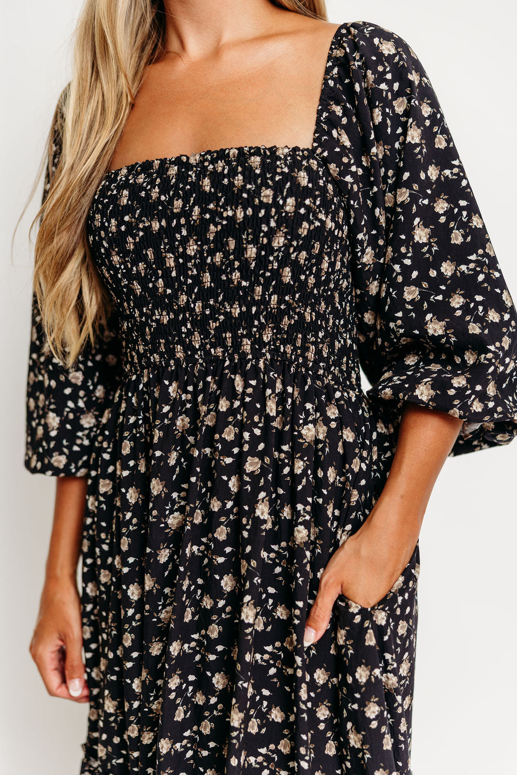 The Cairo Midi Dress in Black/Cream *Final-Sale*