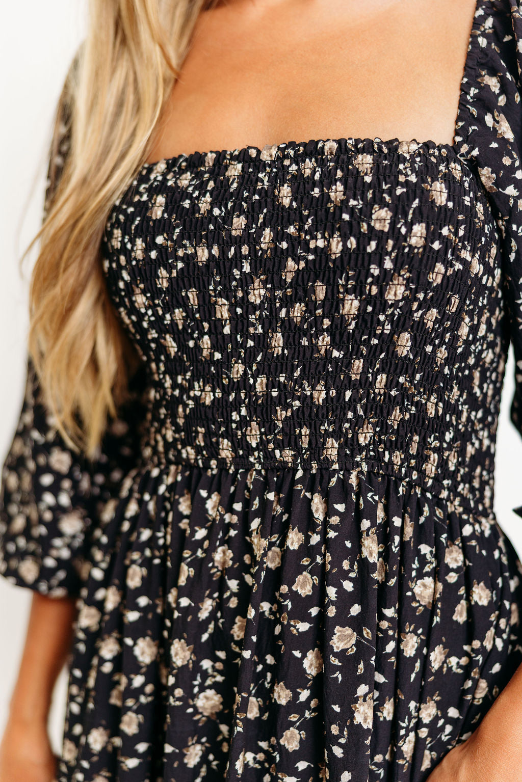 Zinnia 3D Textured Lace Midi Dress in Black *Final-Sale*