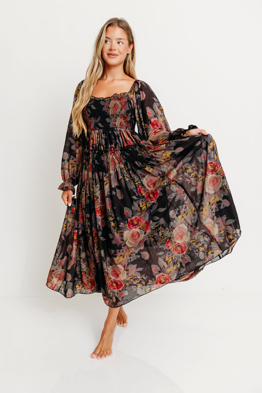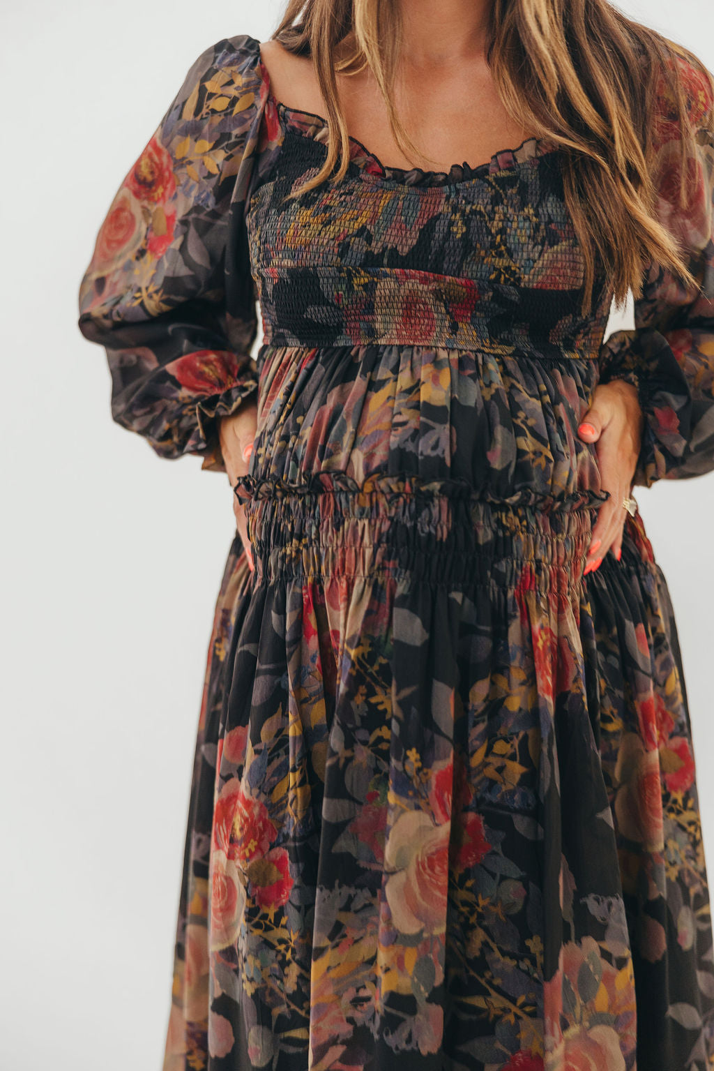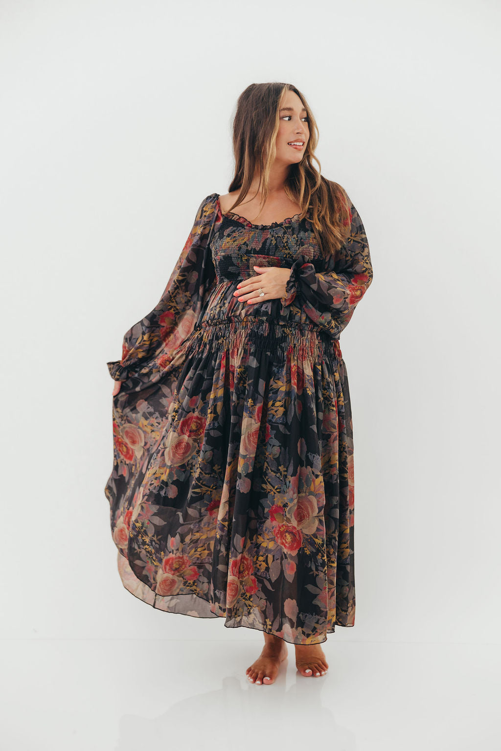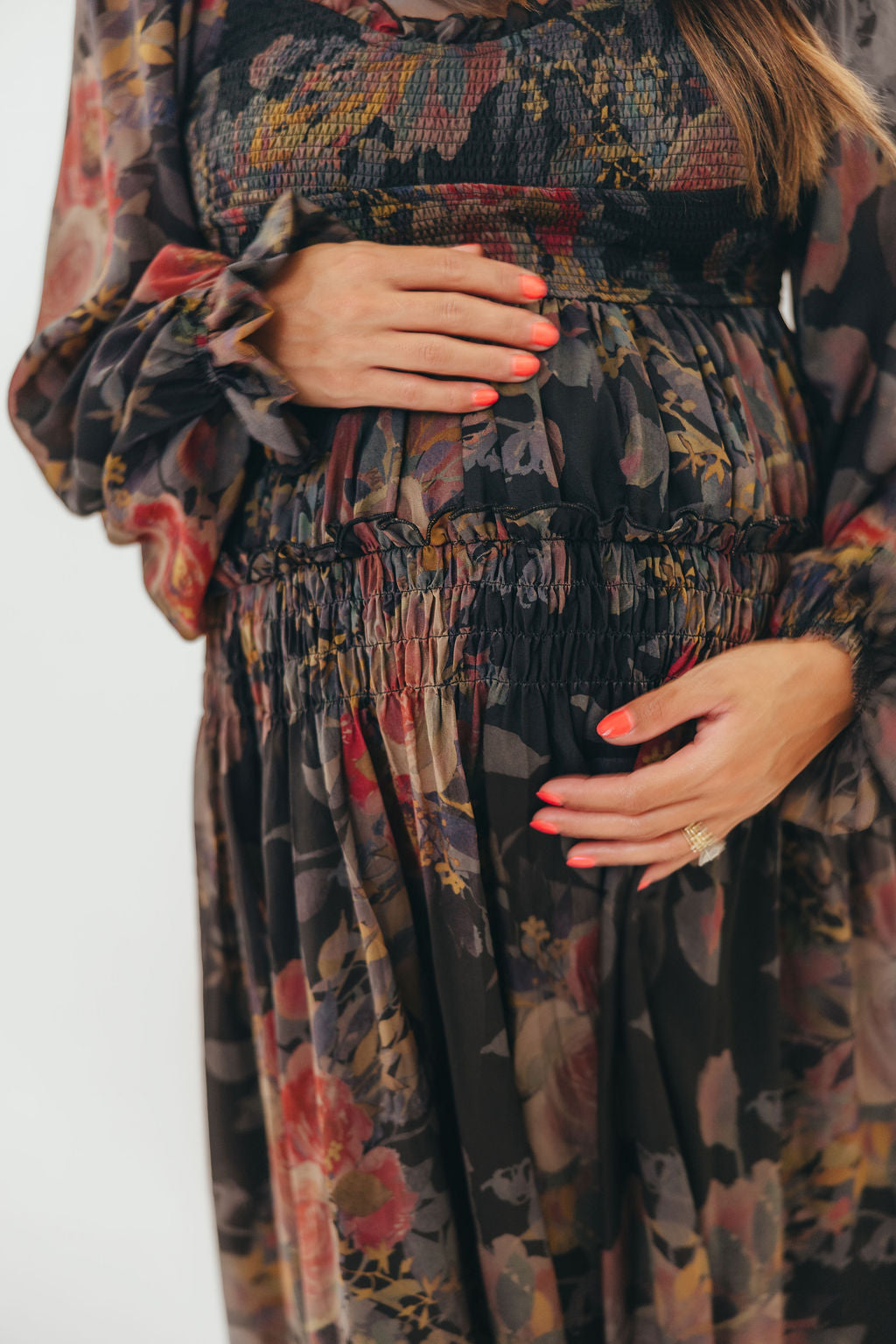 Harley Maxi Dress in Gray Floral - Bump Friendly *Final-Sale*
