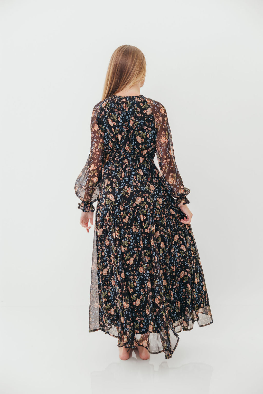 Amelia Ruffle Maxi Dress in Grey/Pink Floral *Final-Sale*