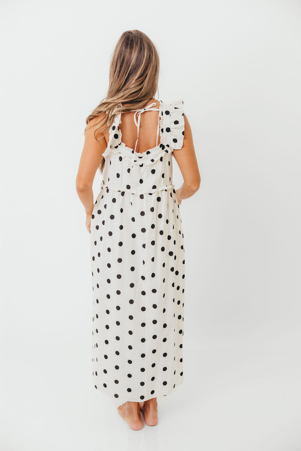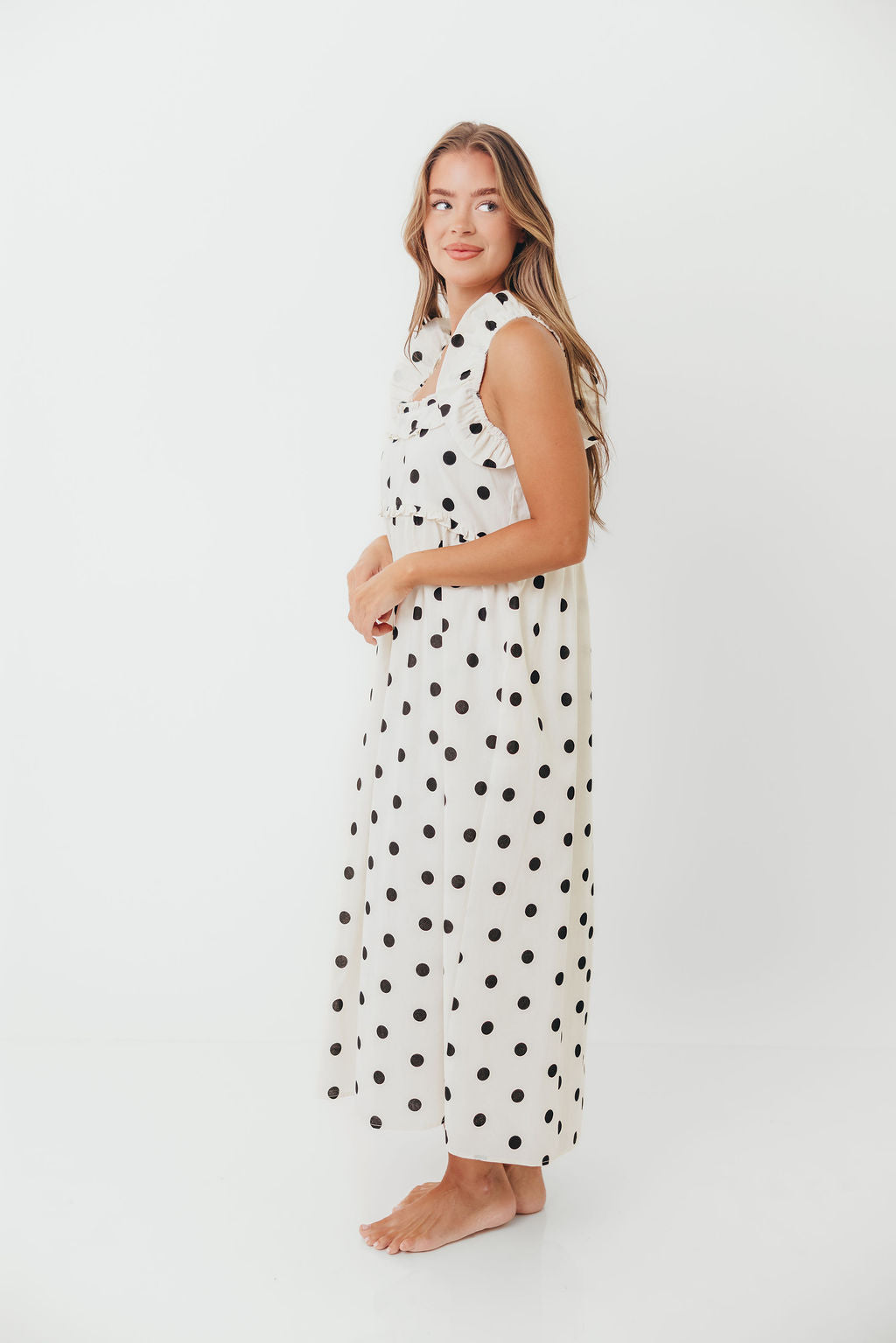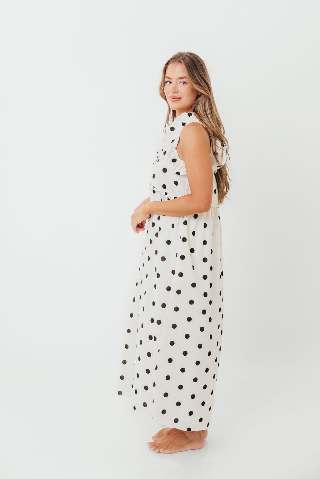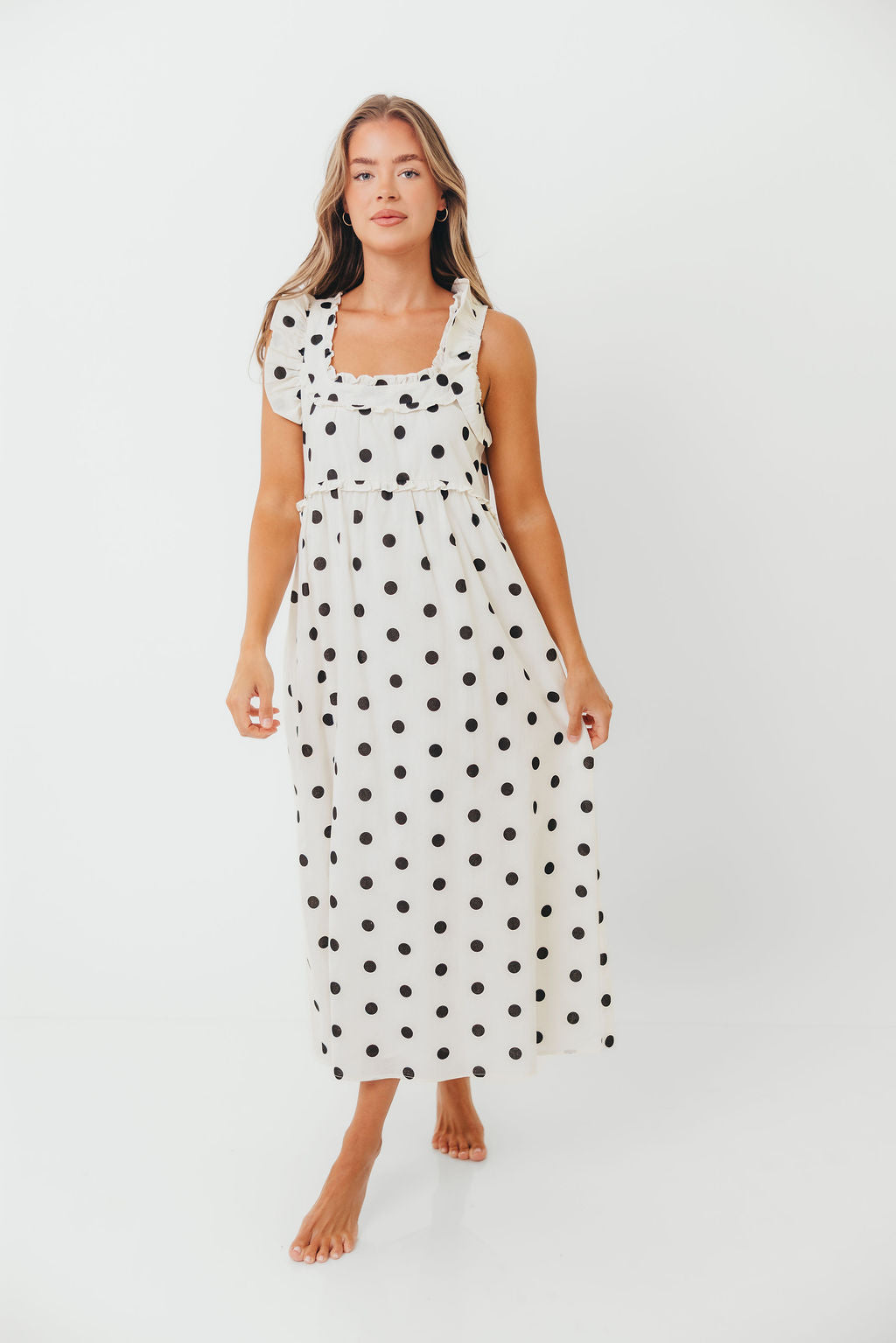 Julia 100% Cotton Polka Dot Midi Dress in Cream/Black