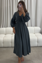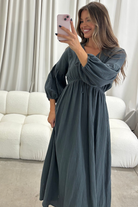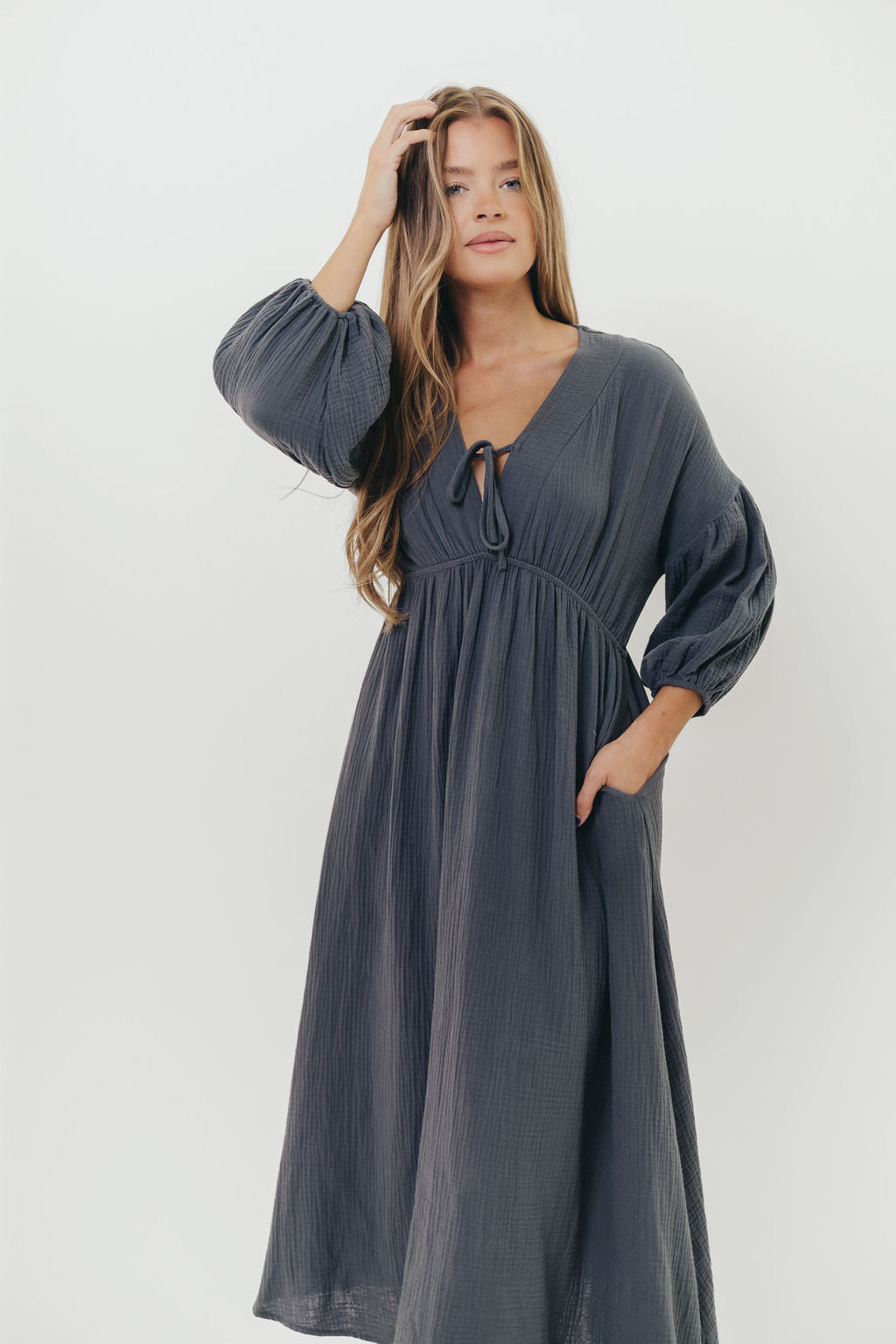 Hunter 100% Cotton Gauze Midi Dress in Dusty Navy - Bump Friendly