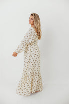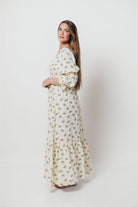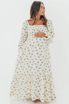 Emerson 100% Cotton Smocked Maxi Dress with Long Sleeves in Off White - Bump Friendly
