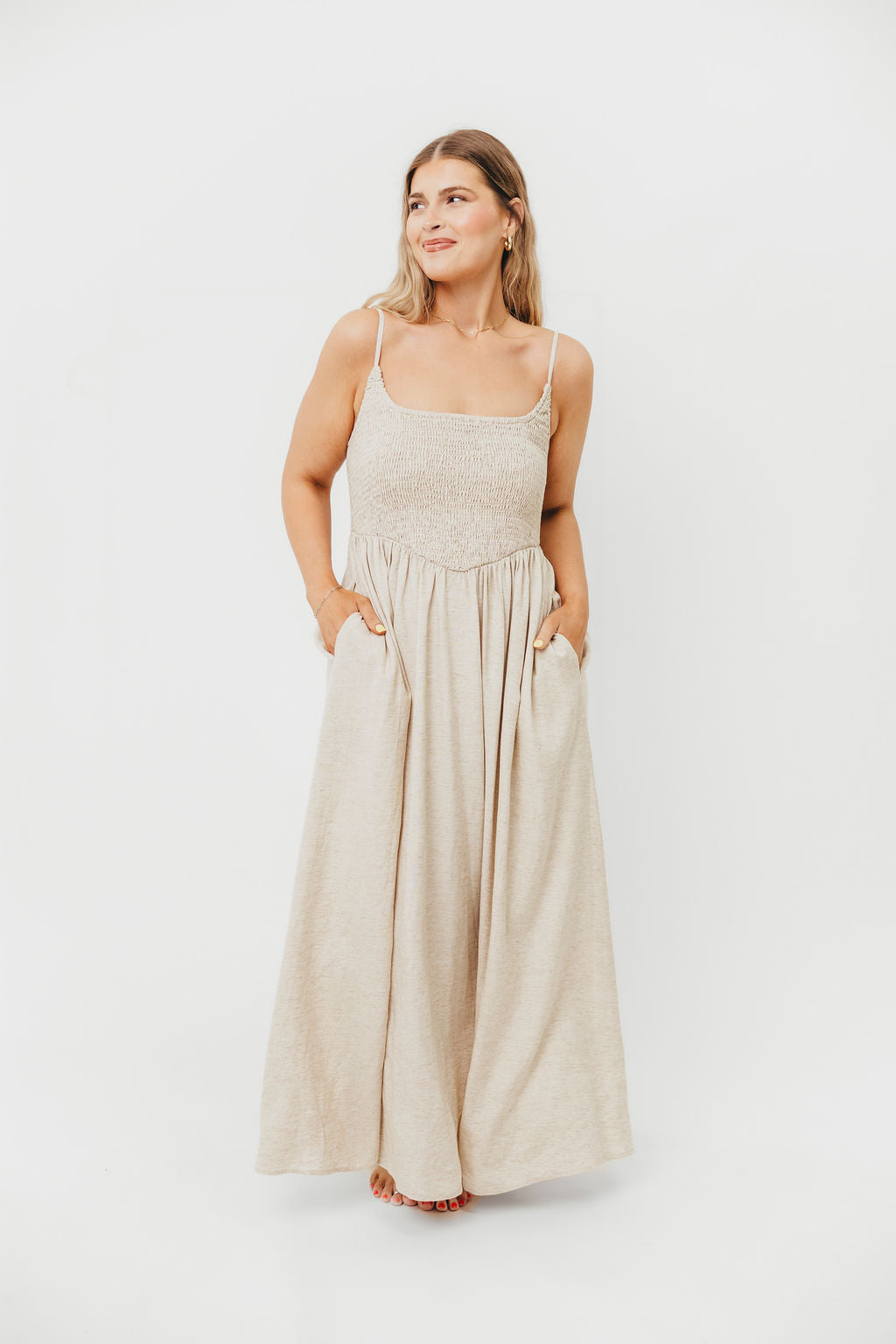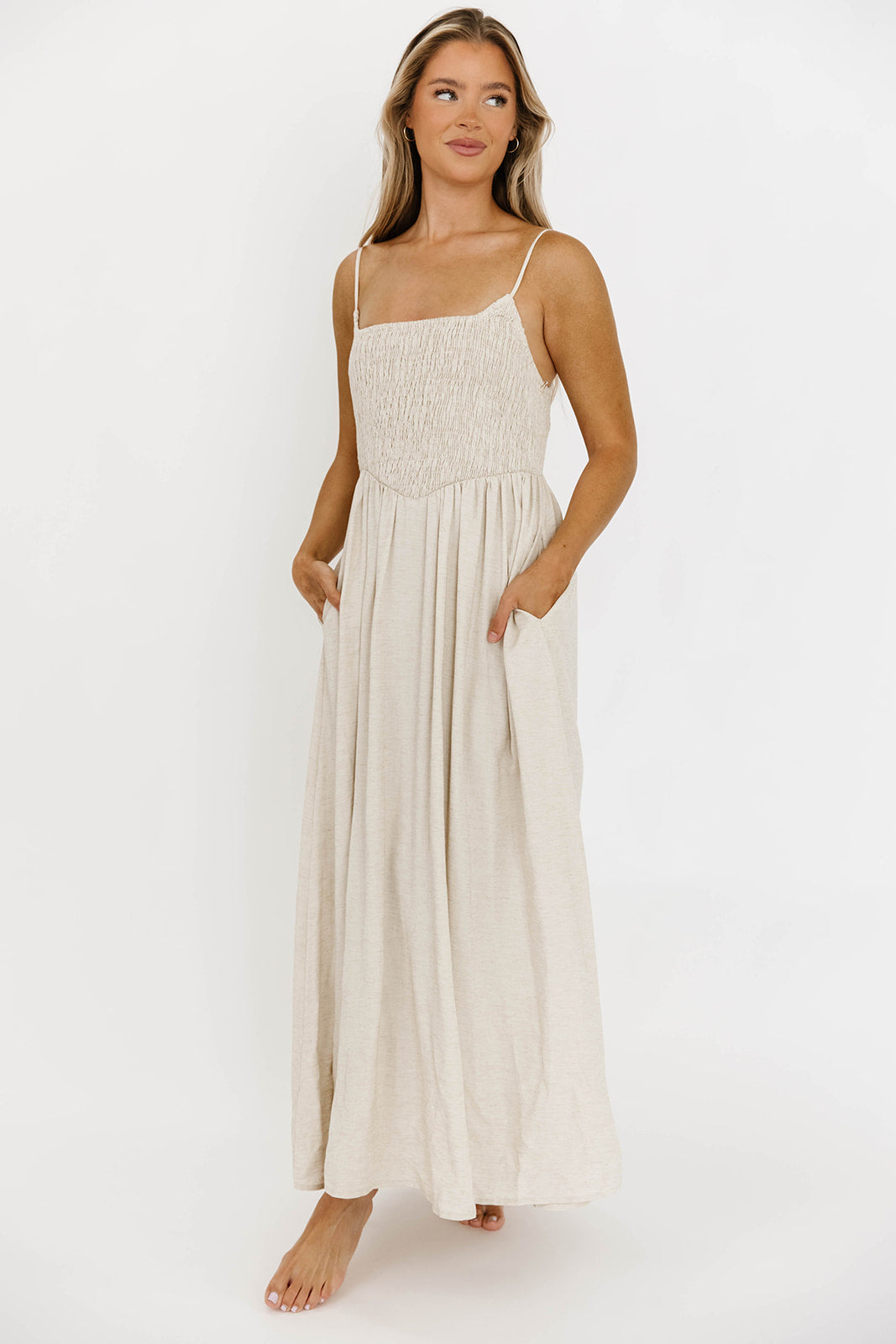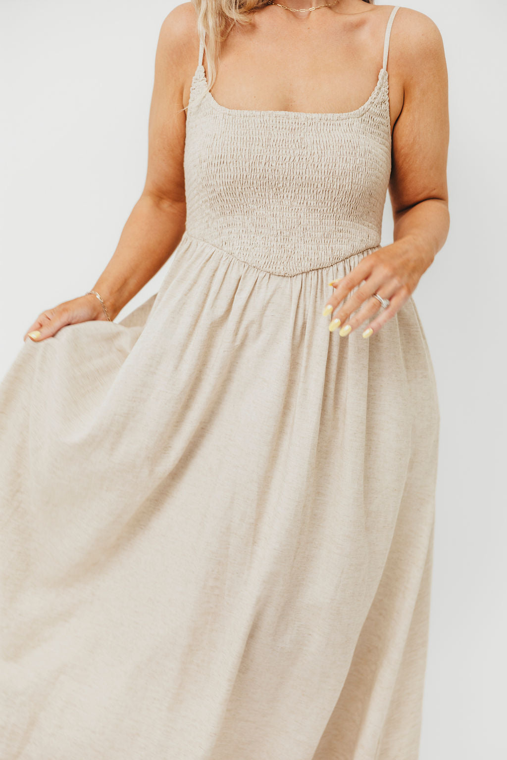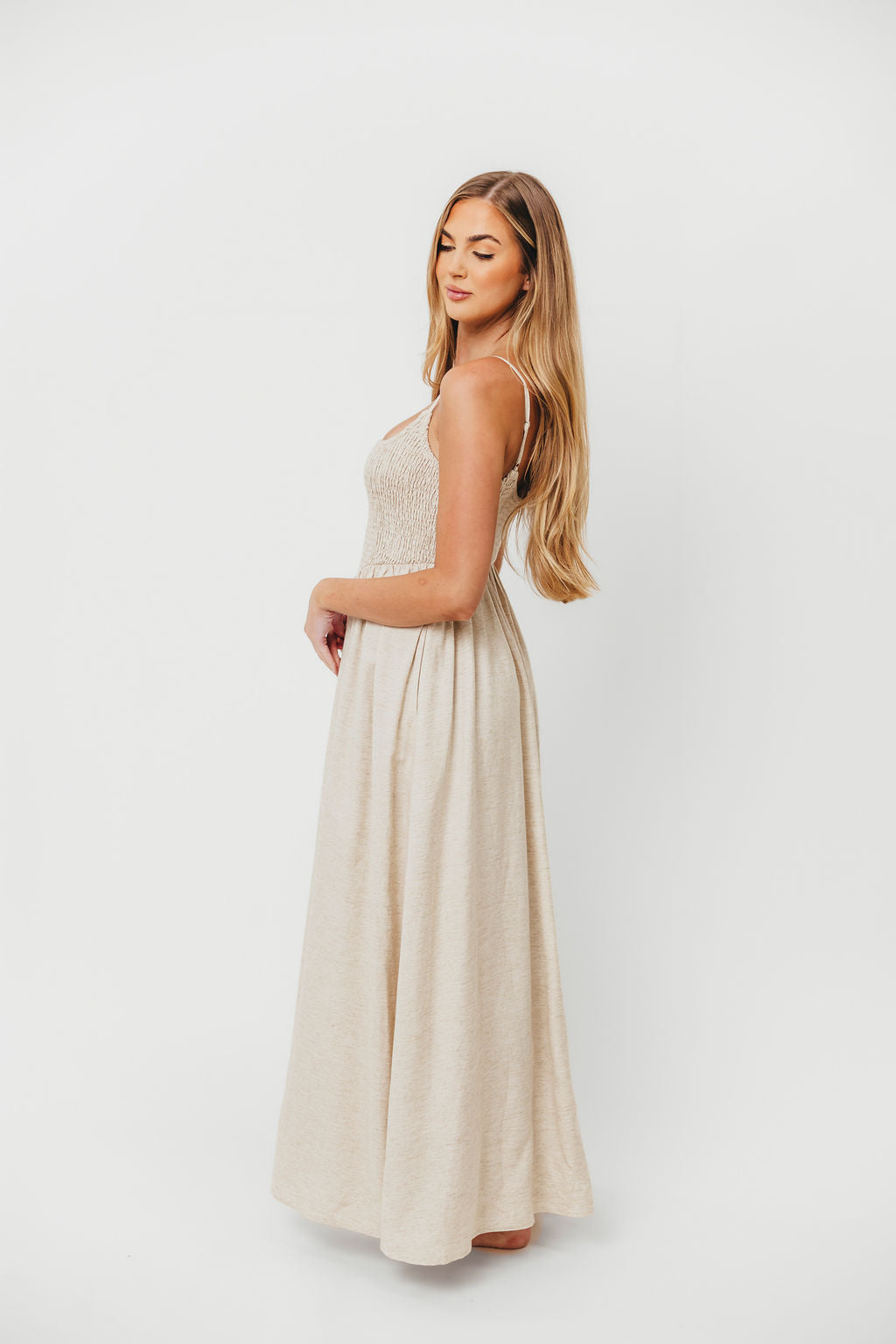 Josefina Smocked Maxi Dress in Natural - Bump Friendly