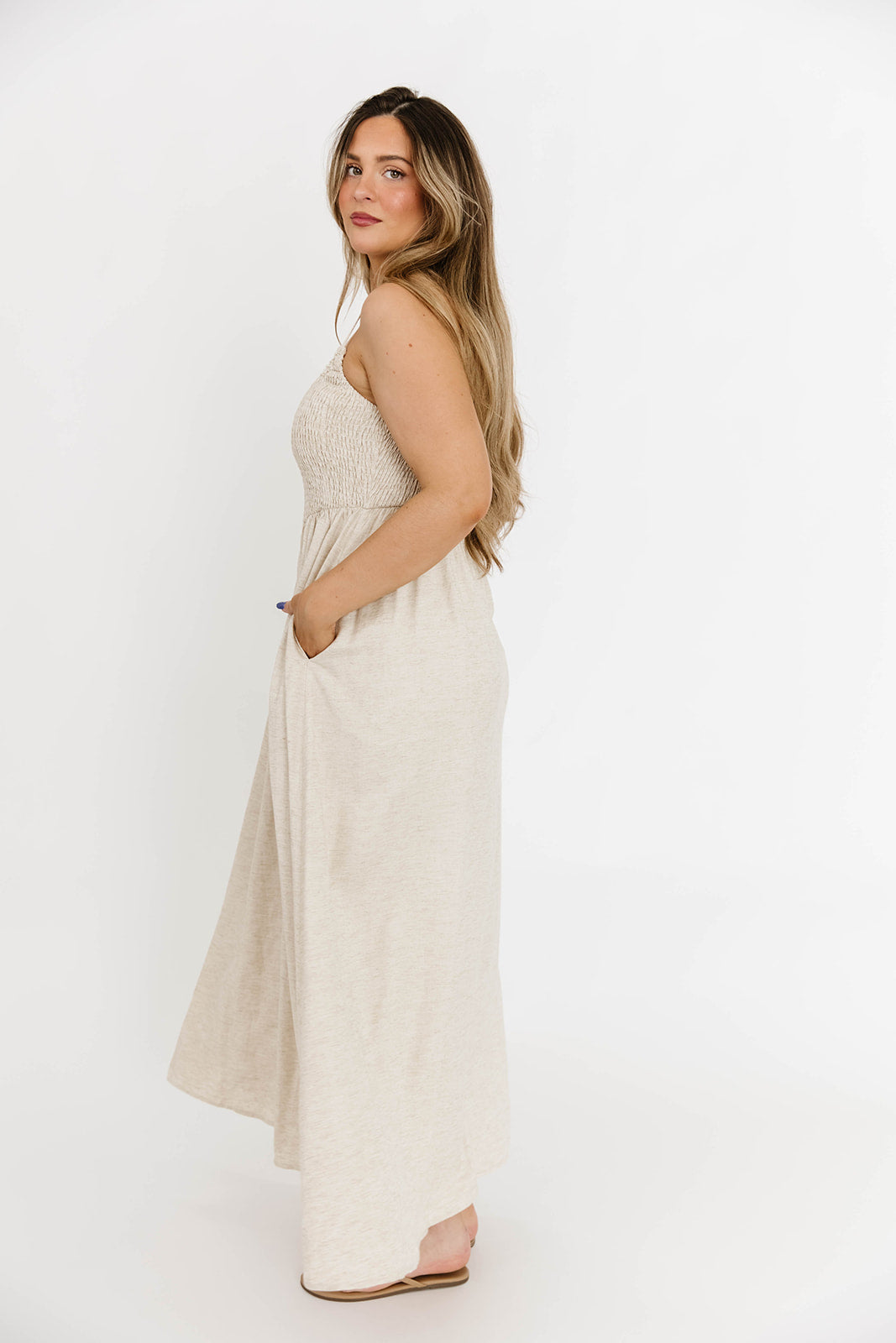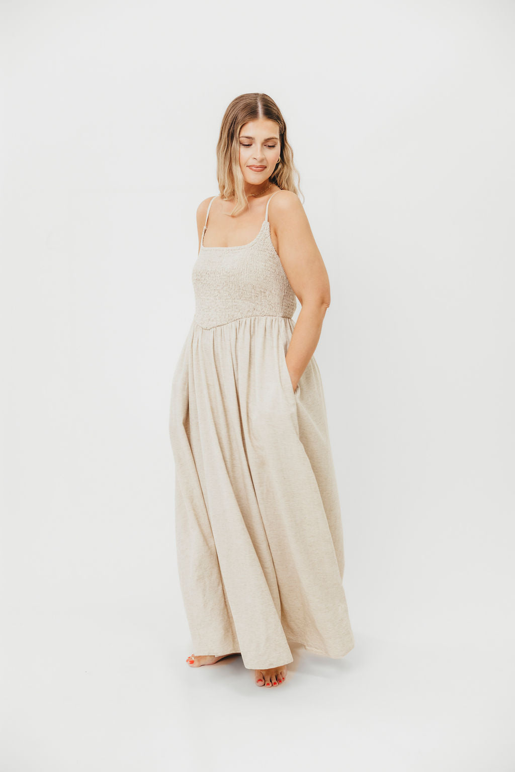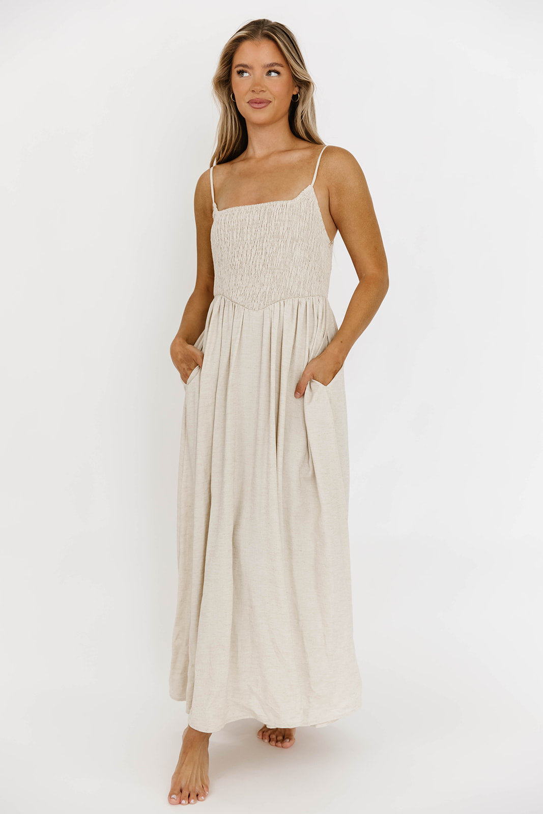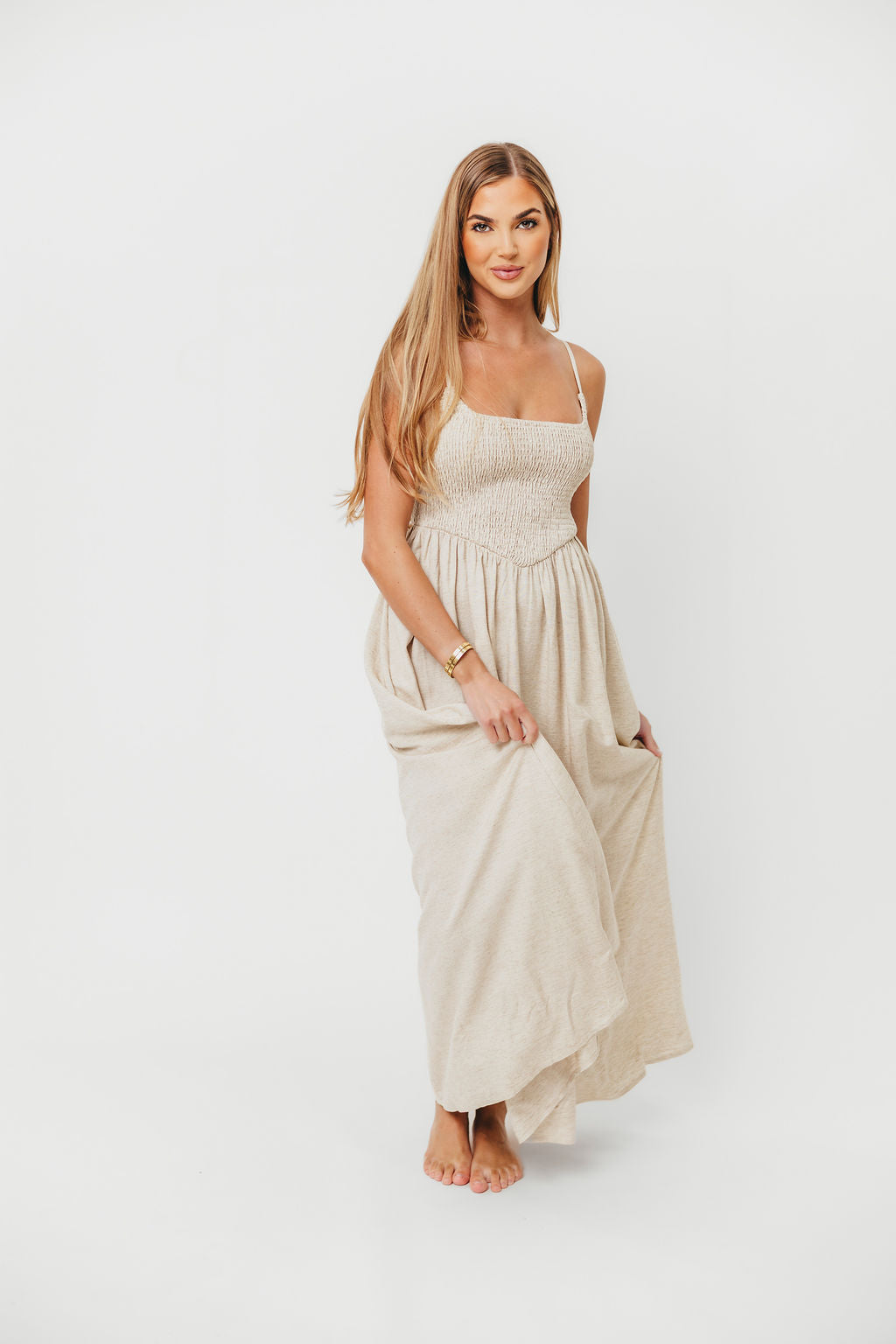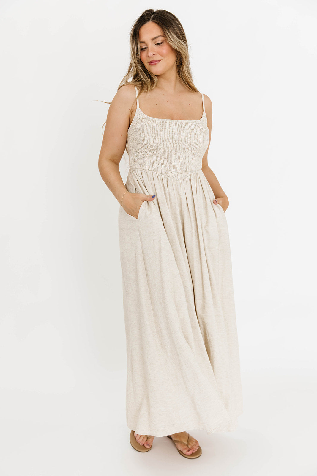 Josefina Smocked Maxi Dress in Natural - Bump Friendly