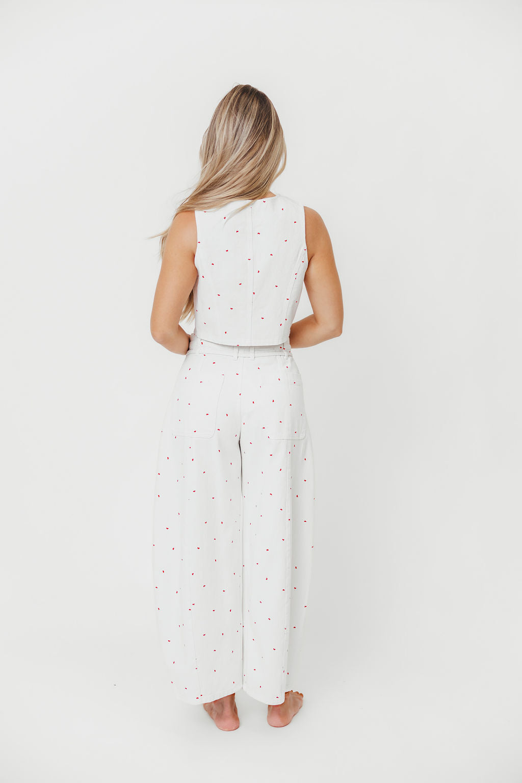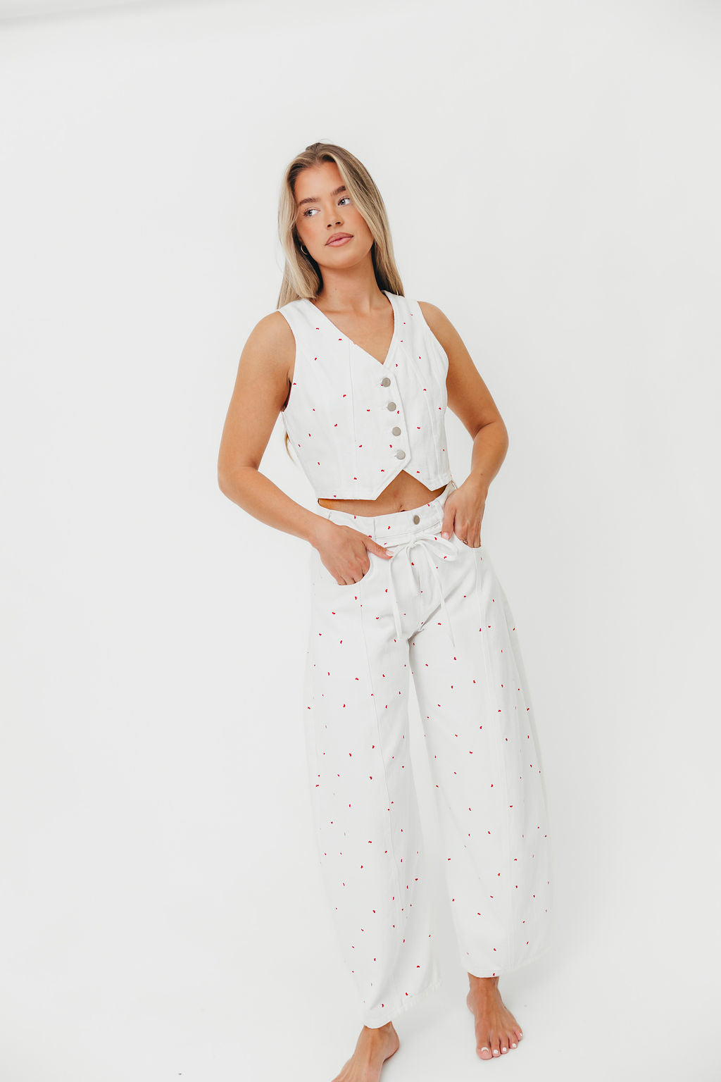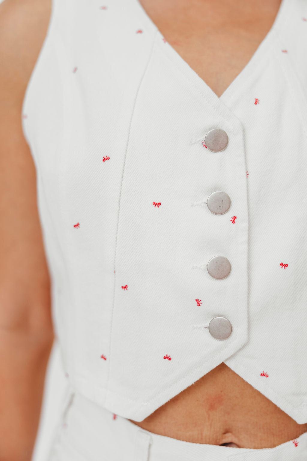 Dolly 100% Cotton Mini Bow Print Twill Vest in Off-White *Final-Sale*