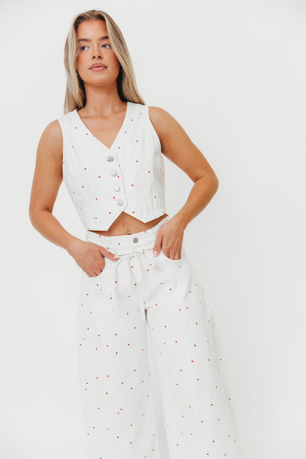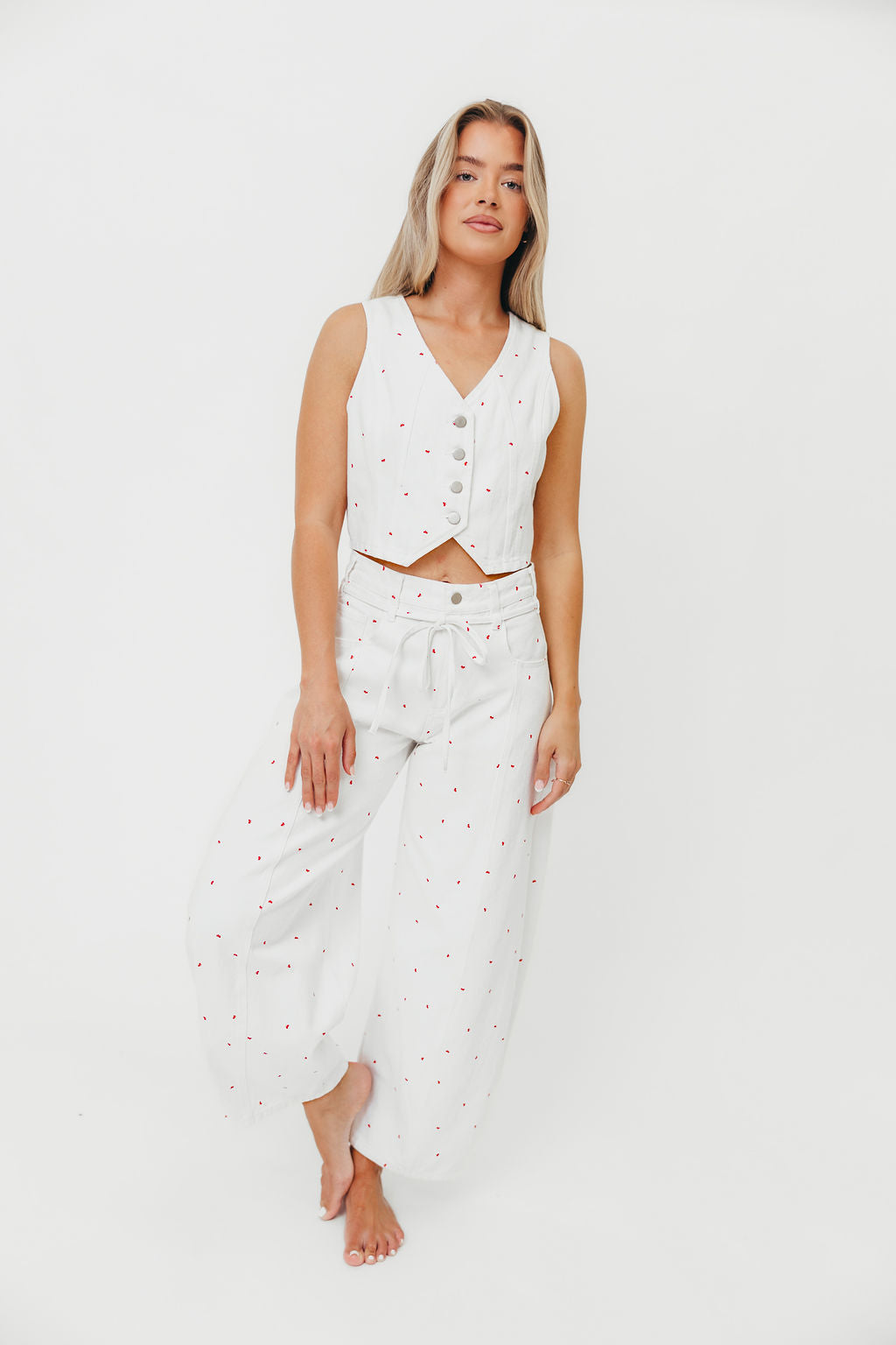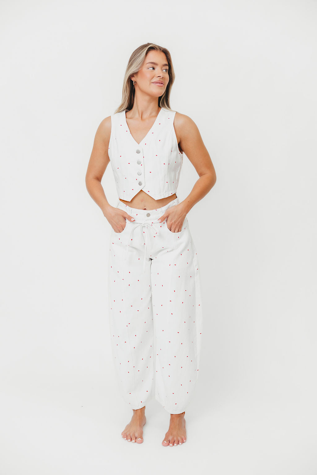 Dolly 100% Cotton Mini Bow Print Twill Vest in Off-White *Final-Sale*