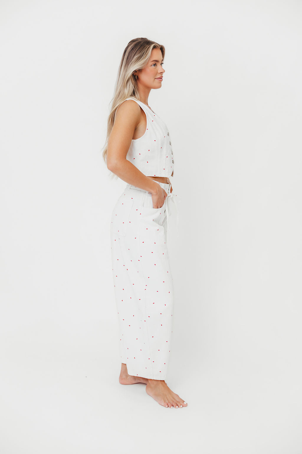 Parton Mini Bow Print Waist Tie Detail Washed Barrel Jeans in Off White *Final-Sale*