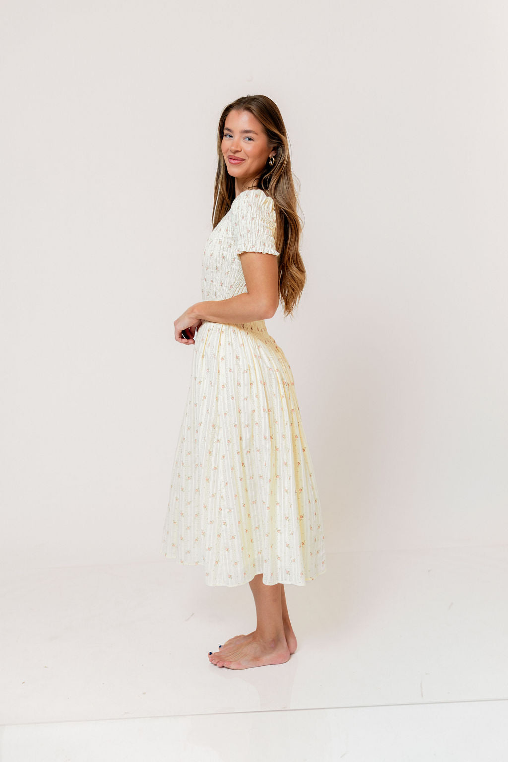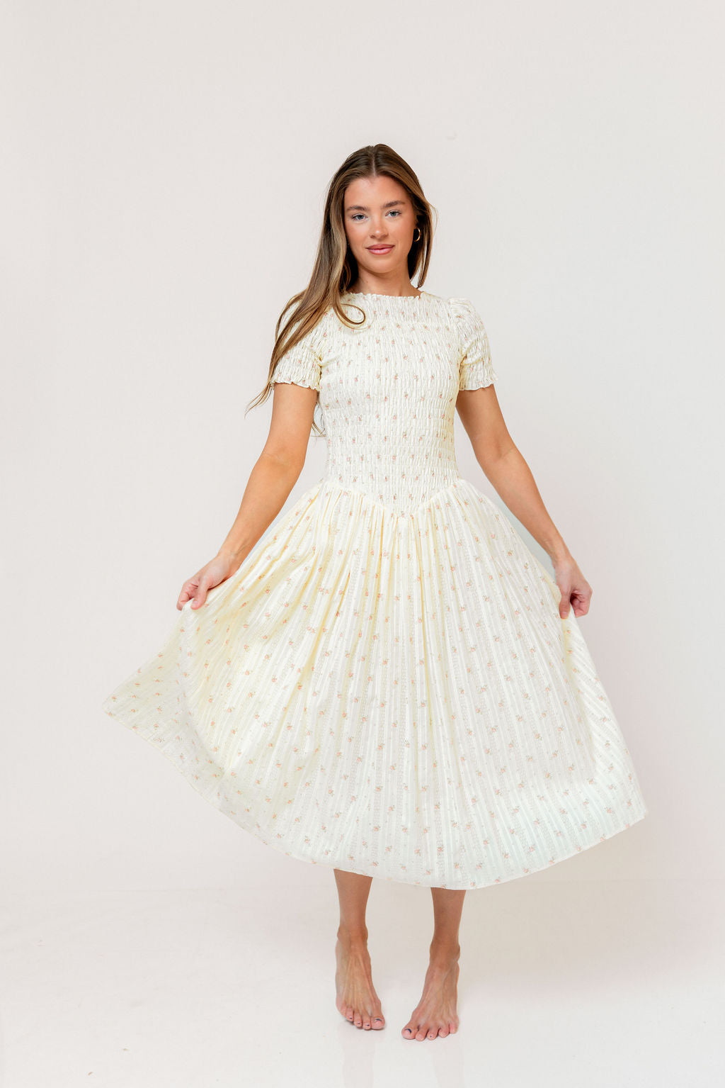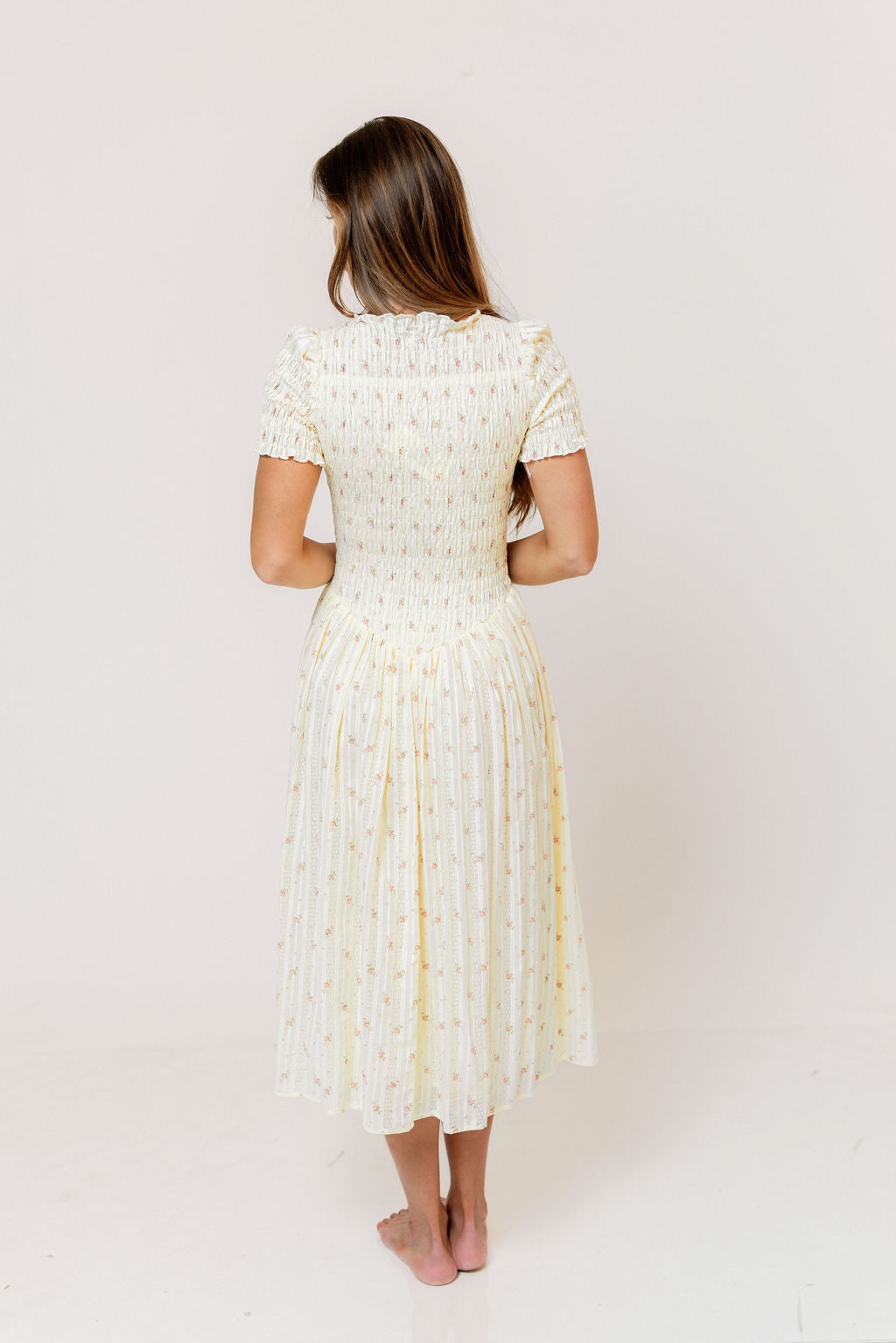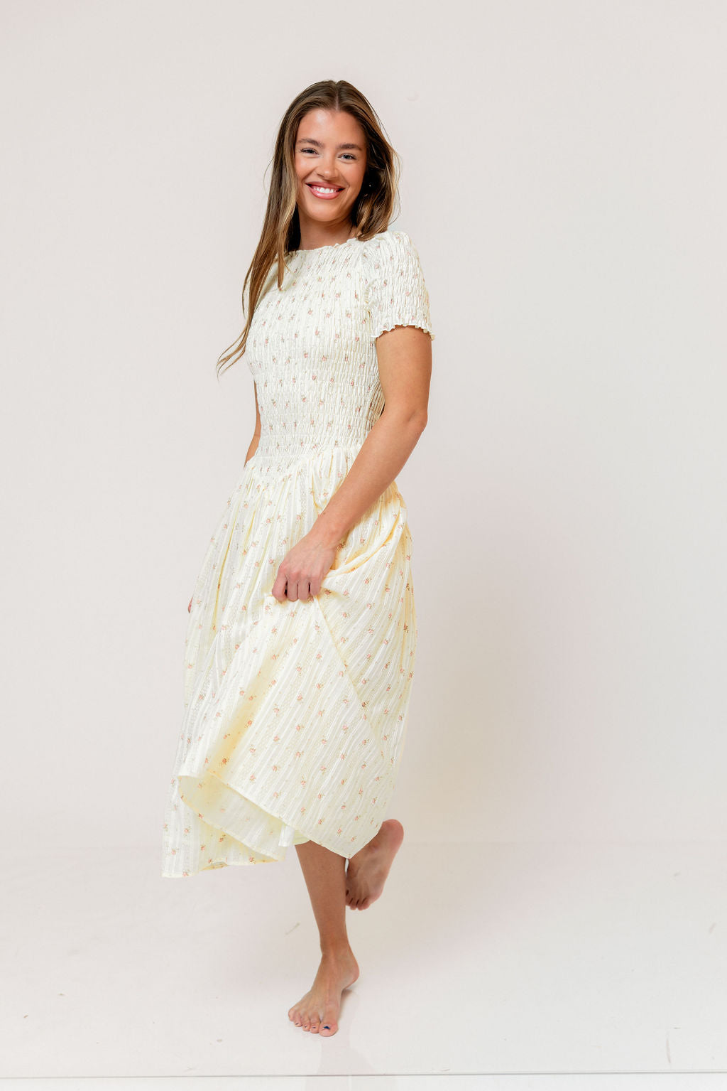 Bianca Smocked Floral Midi Dress in Butter Yellow - Restocking in April