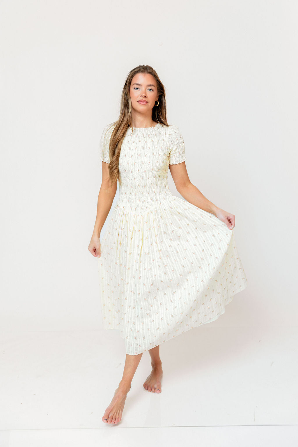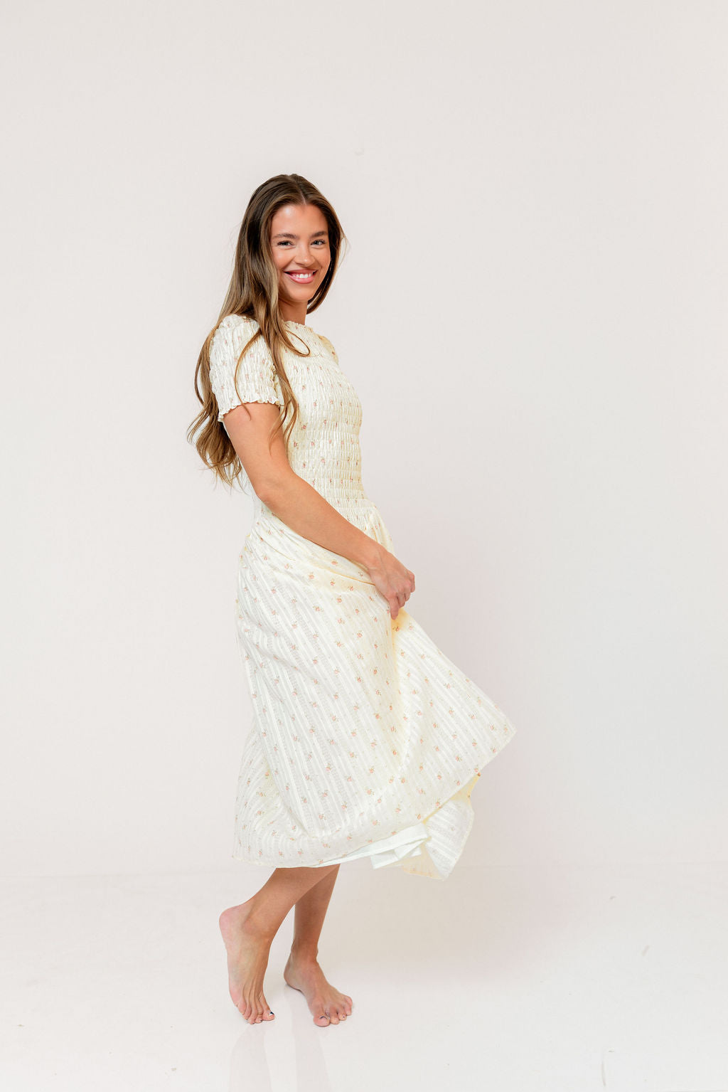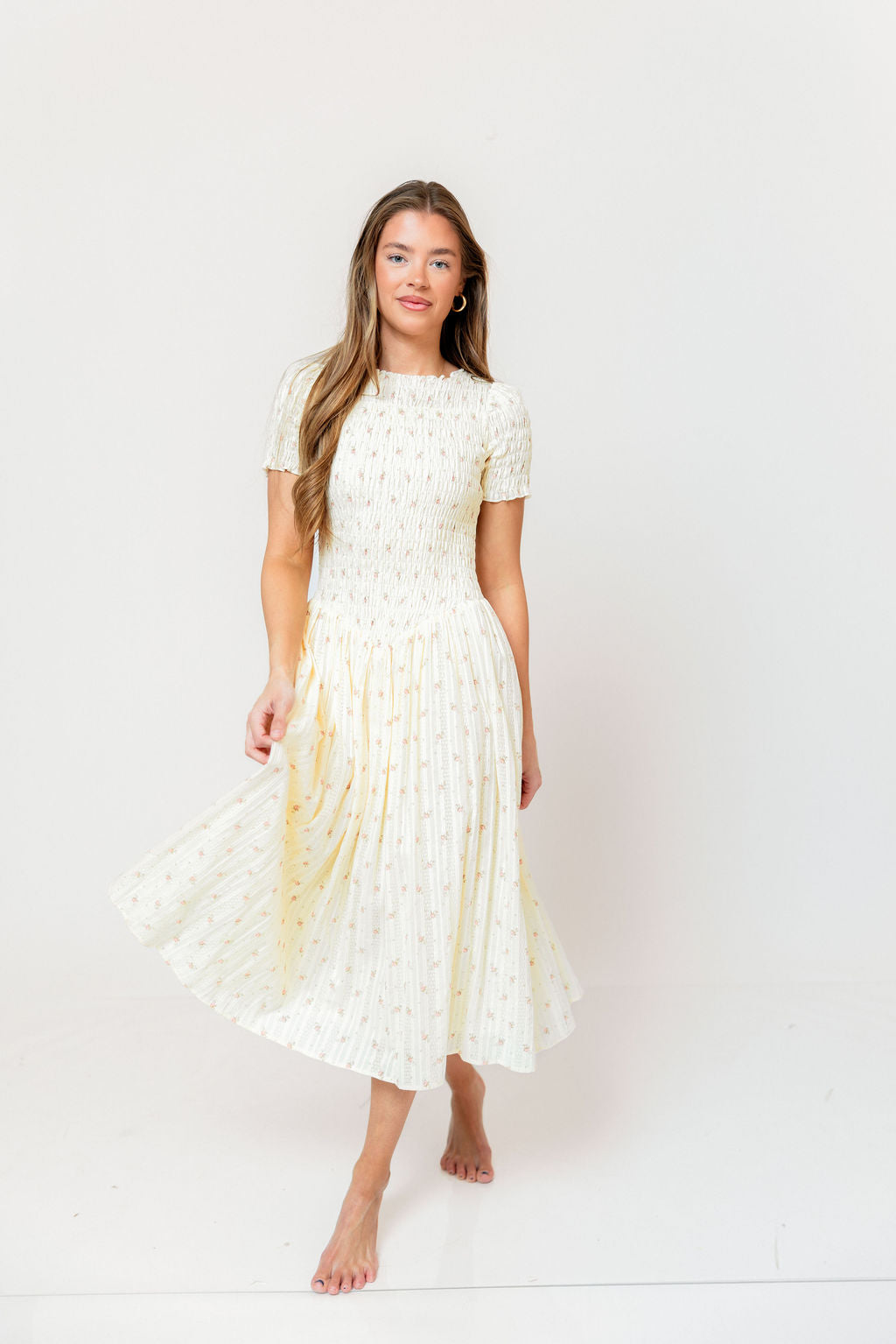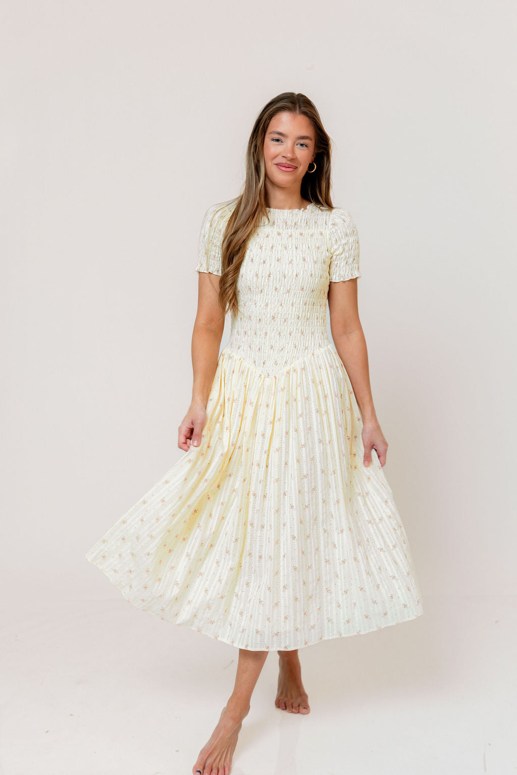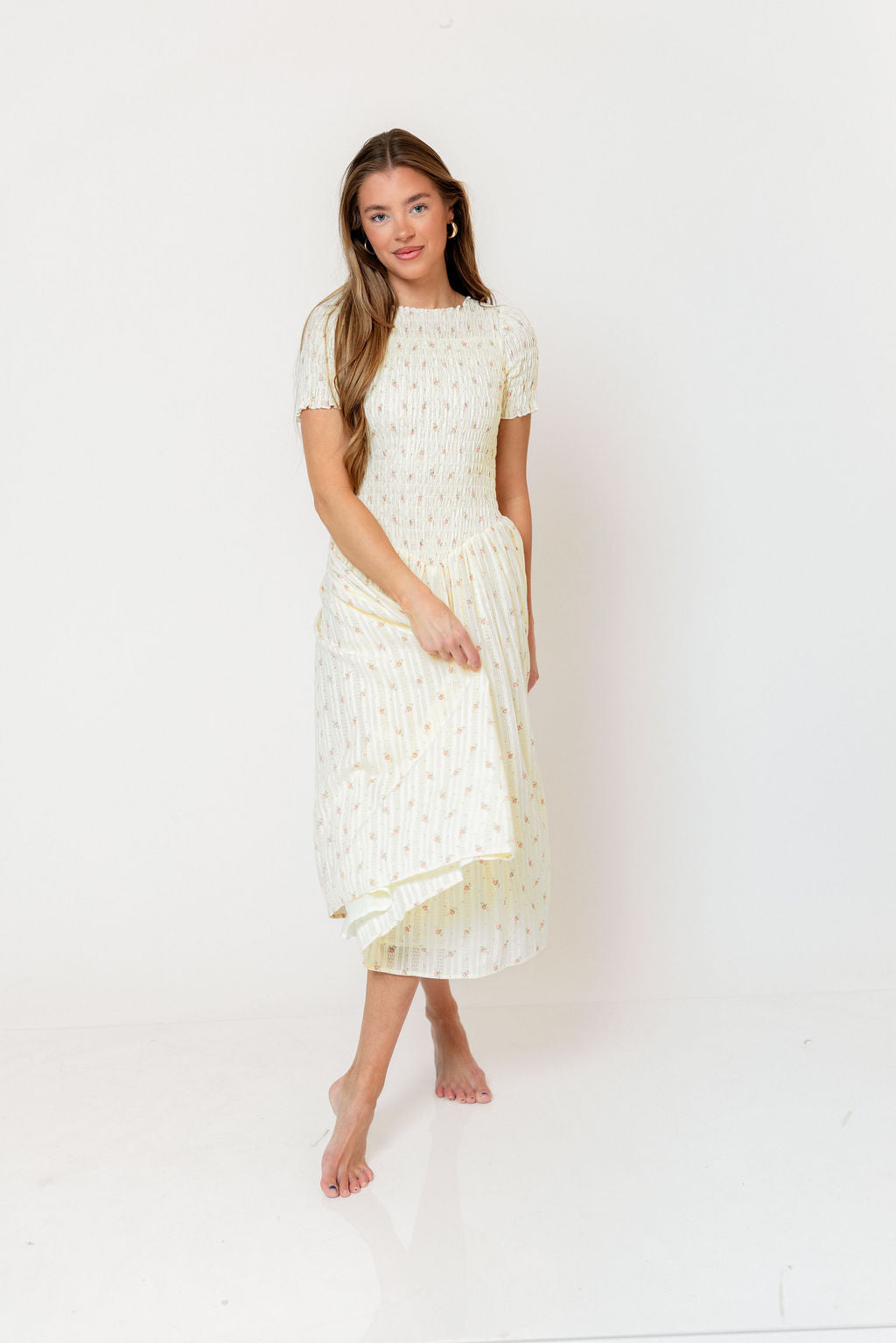 Bianca Smocked Floral Midi Dress in Butter Yellow - Restocking in April