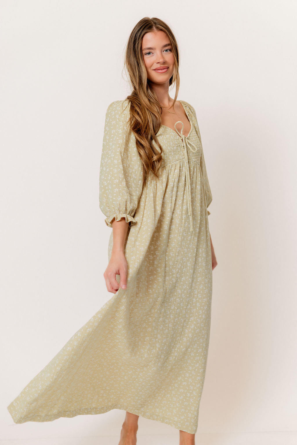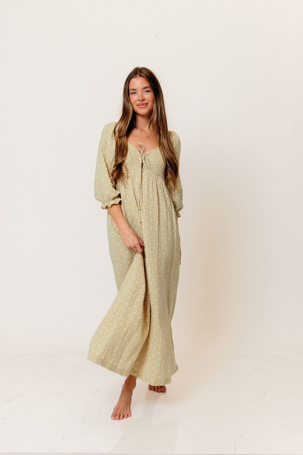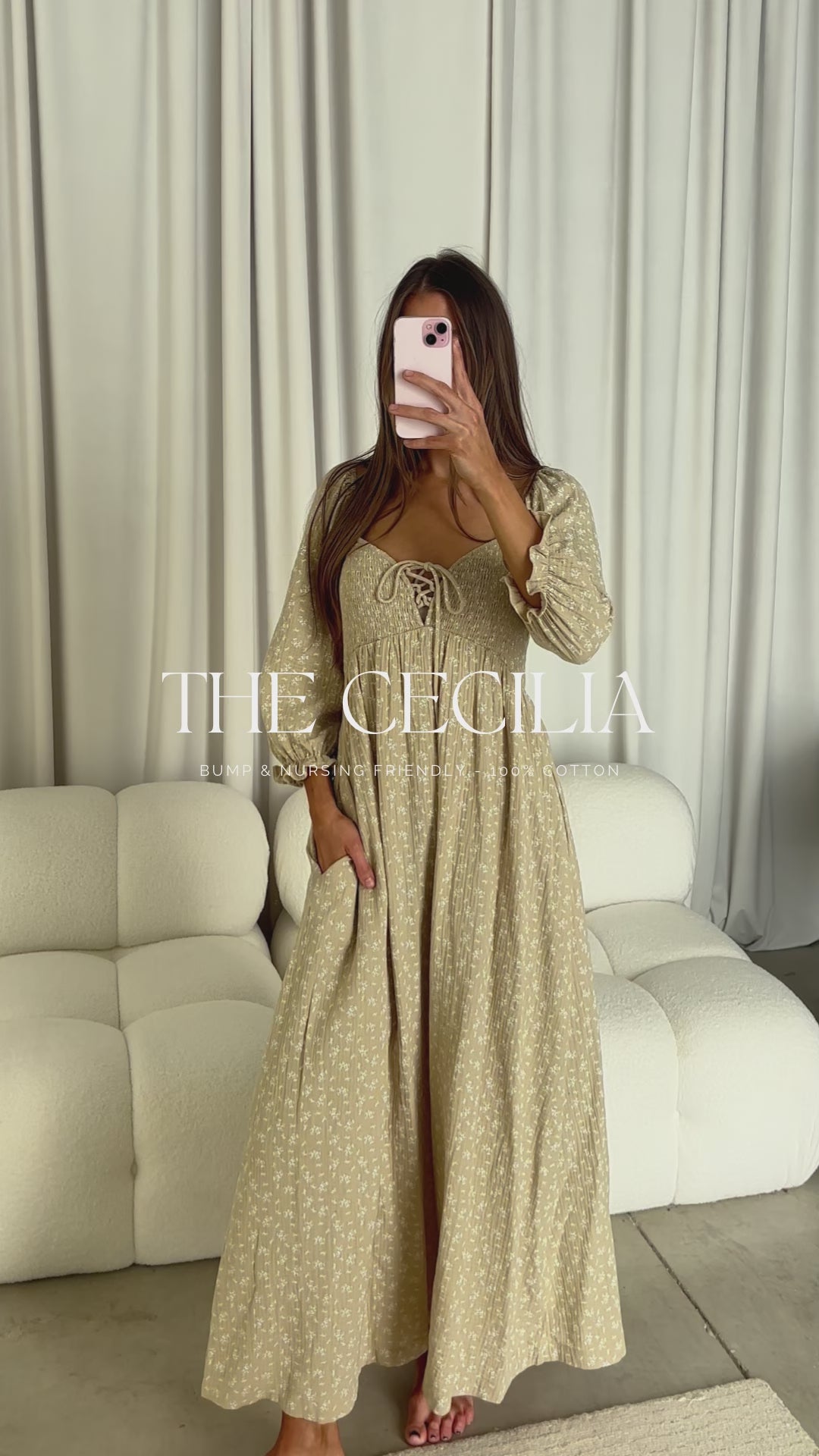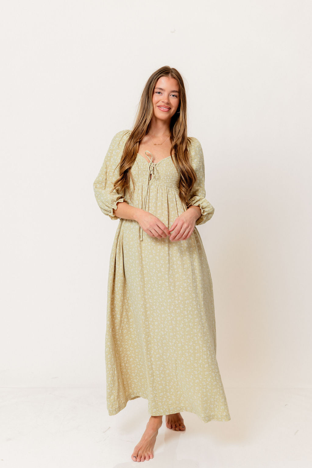 Cecilia 100% Cotton Smocked Maxi Dress in Green Haze Foliage - Bump Friendly *2/11 PRE-ORDER*