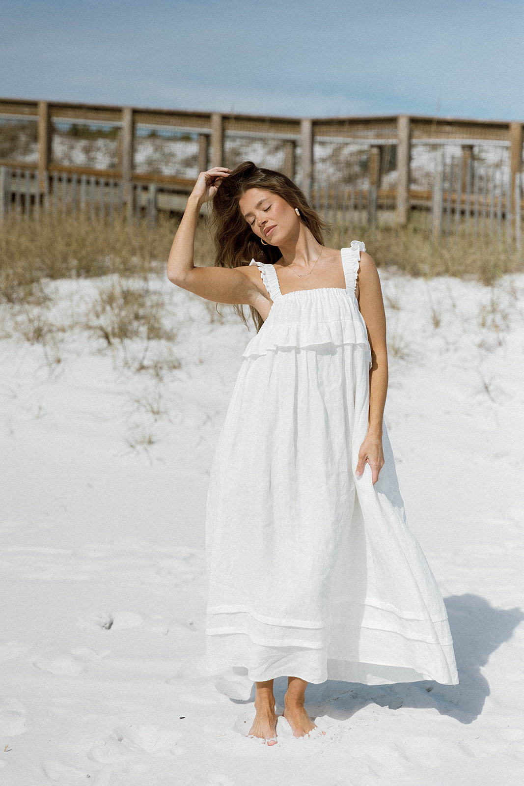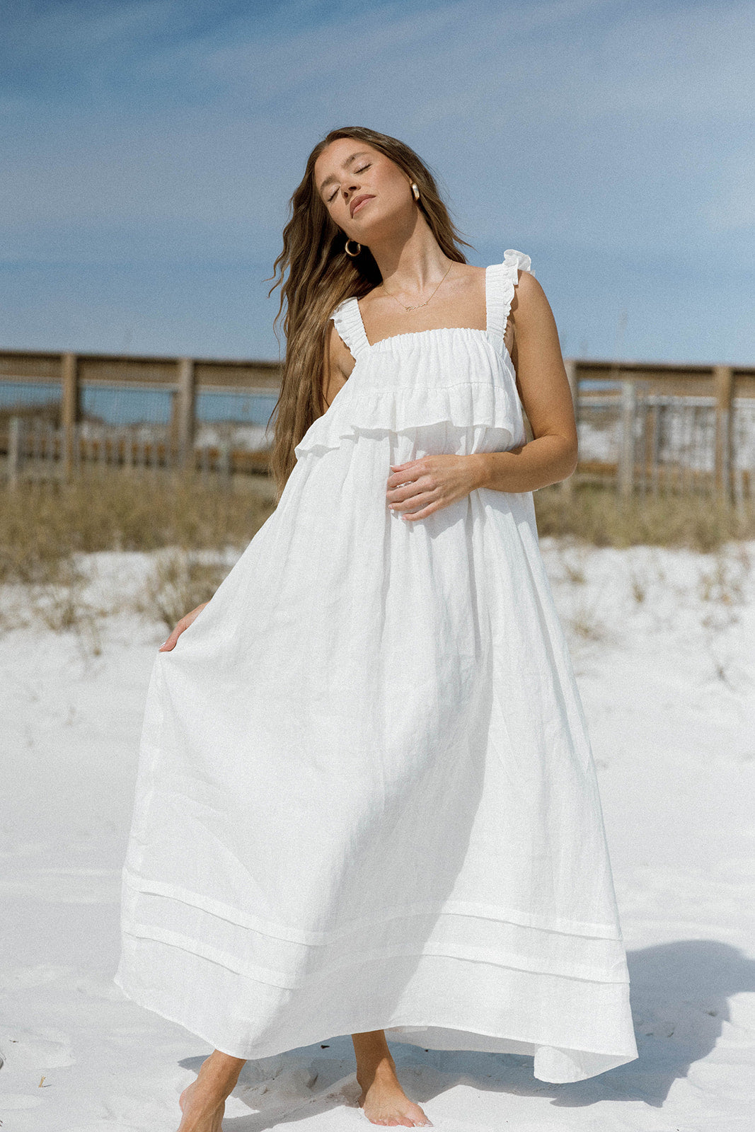 Lelah 100% Linen Maxi Dress in Off White - Bump Friendly *2/6 PRE-ORDER*