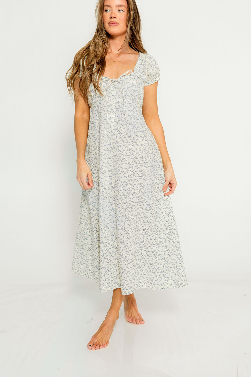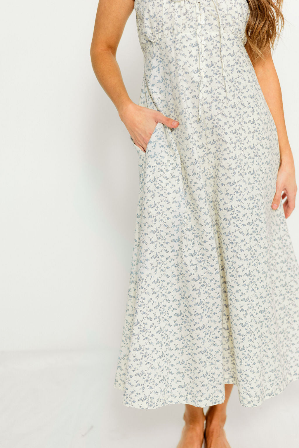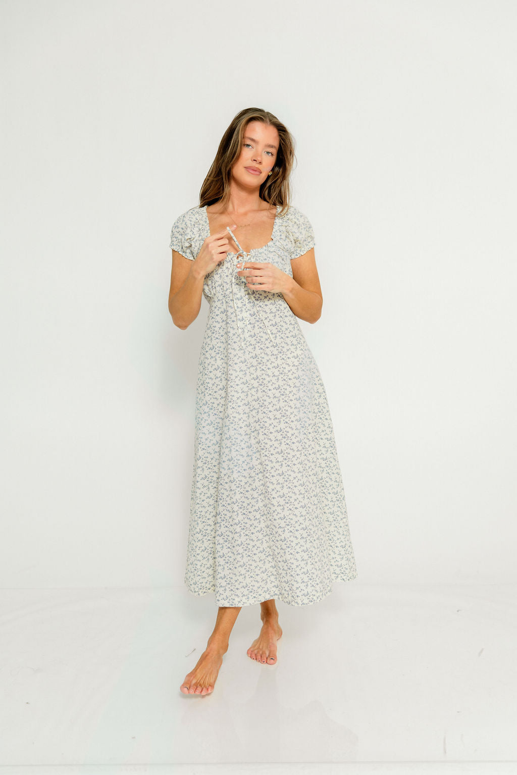 Marley 100% Cotton Midi Dress in Blue Floral *2/13 PRE-ORDER*