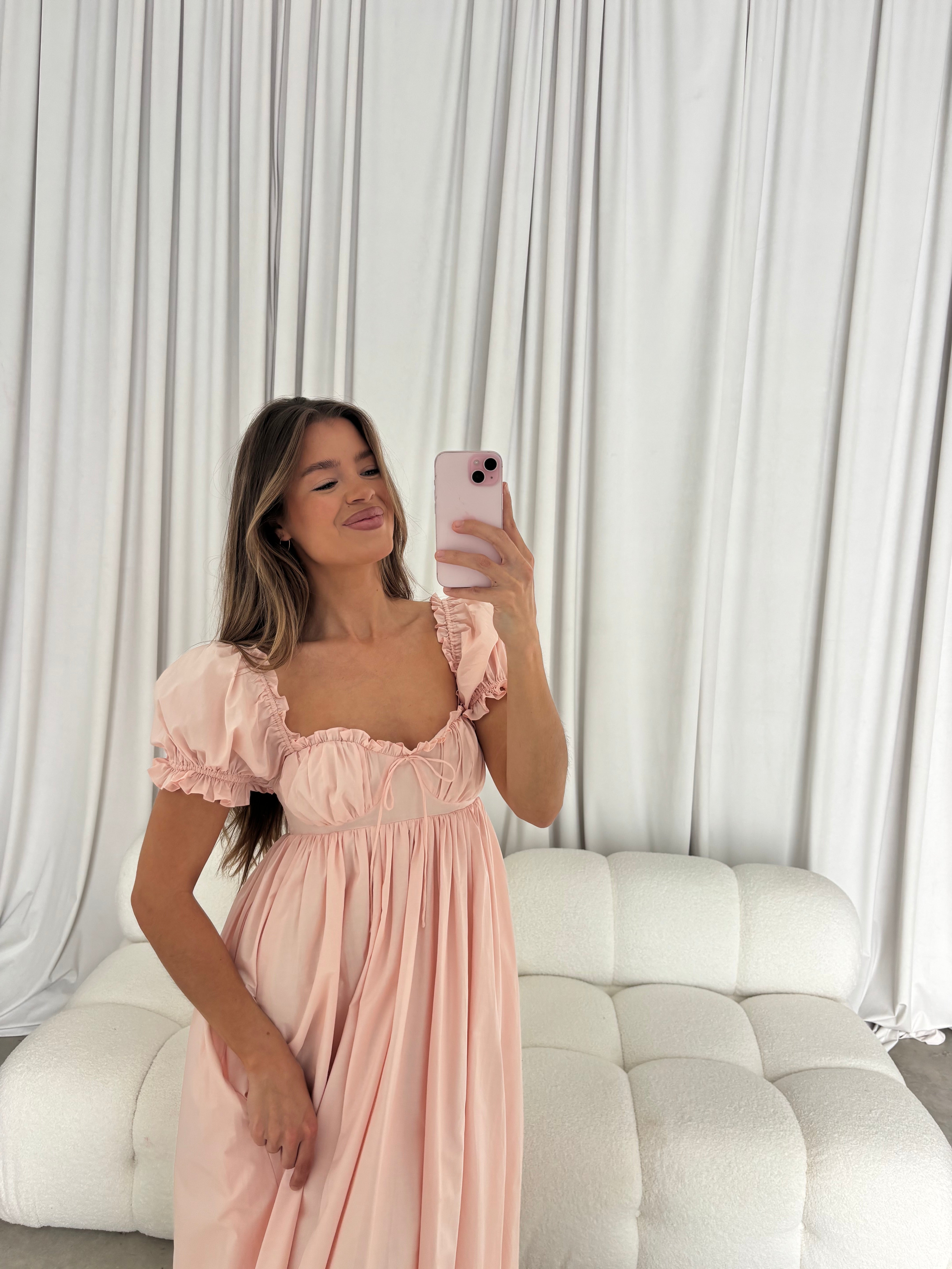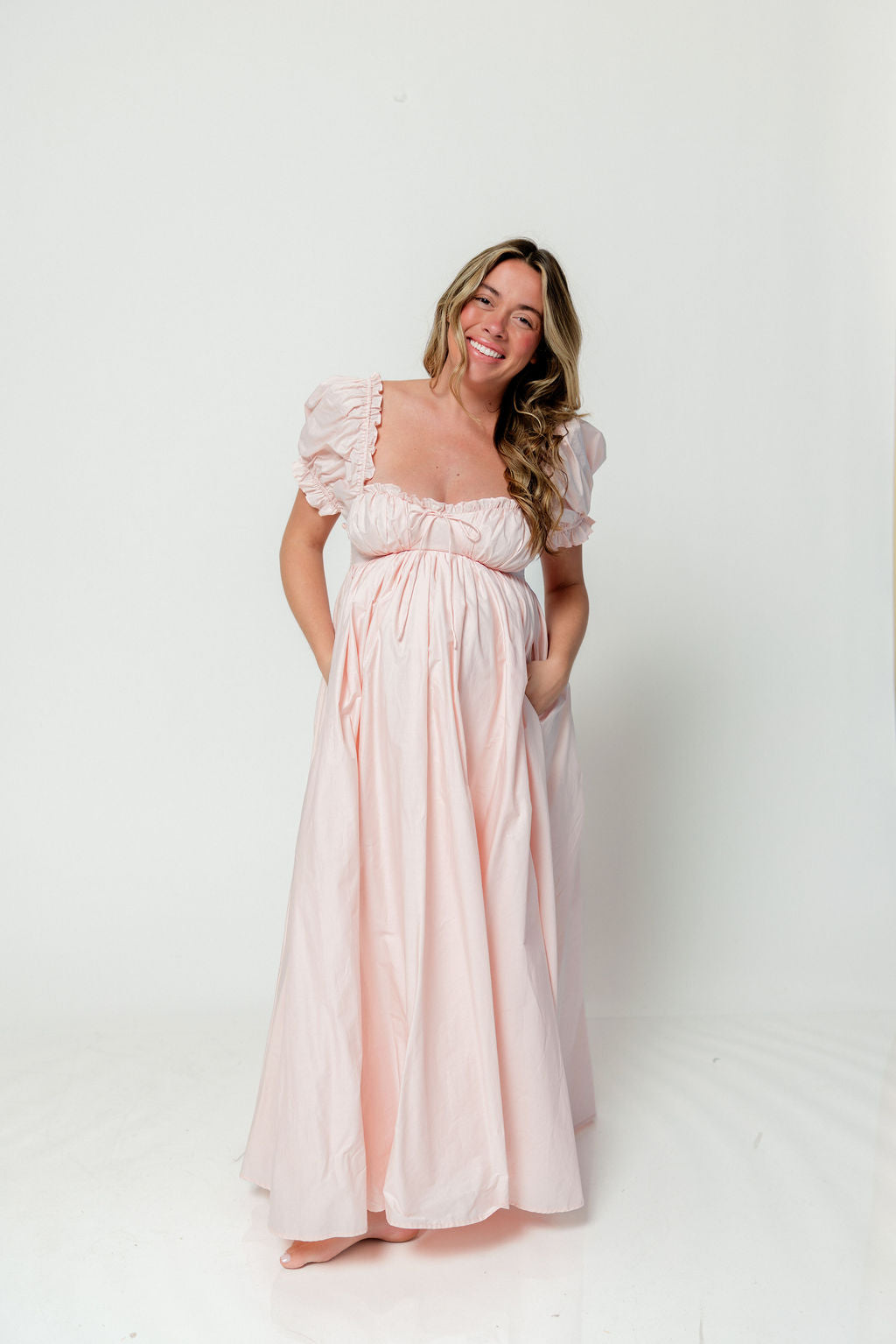 Olivia 100% Cotton Maxi Dress in Pale Pink - Bump Friendly