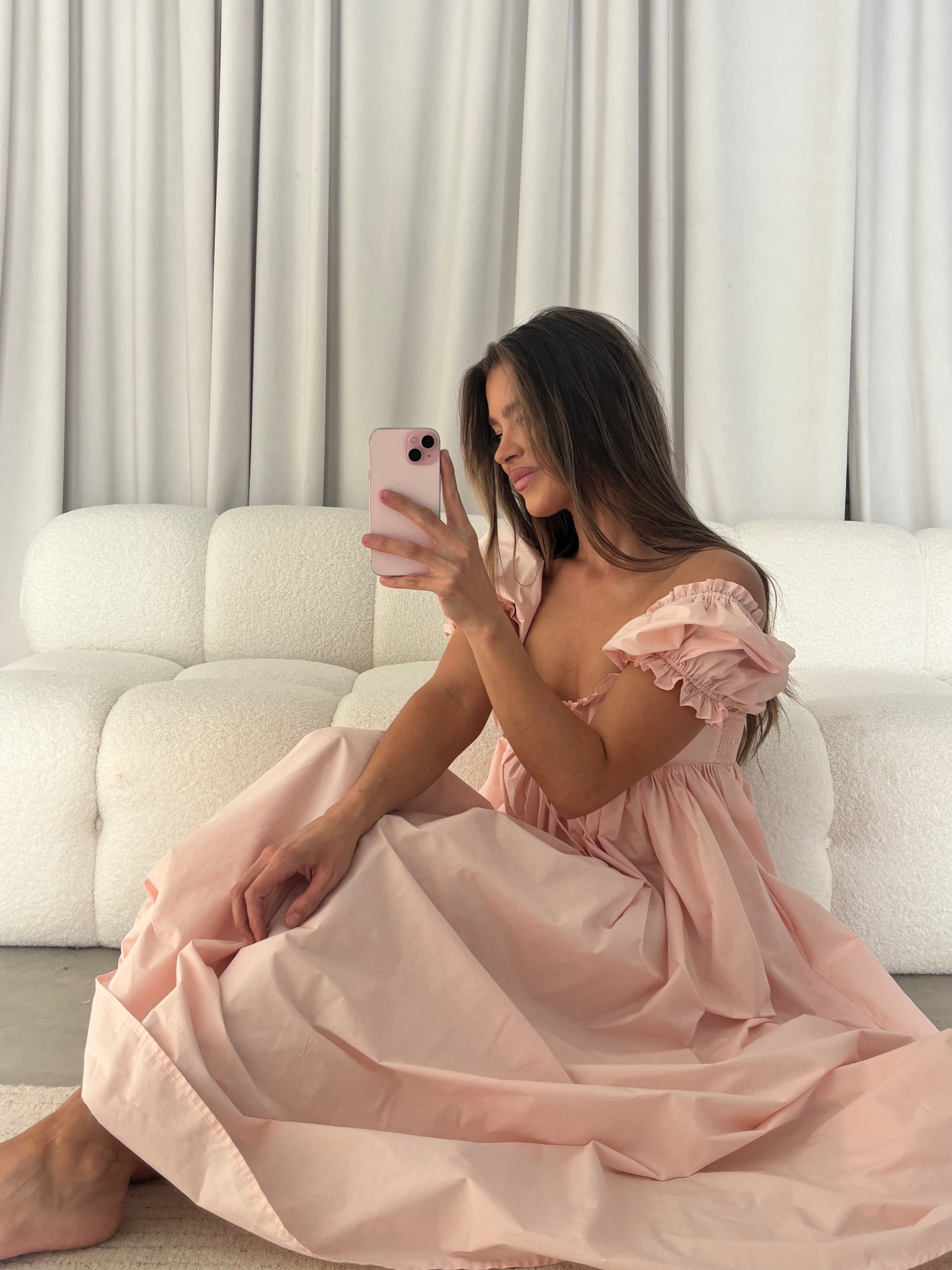 Meet the Olivia Maxi Dress, an absolutely gorgeous gown where effortless elegance meets classic femininity. Its graceful pastel hue and sophisticated silhouette drapes beautifully and flatters every body type, including those with a sweet baby bump! The Olivia is perfect for garden parties, spring weddings, or any special occasion that calls for quiet luxury.