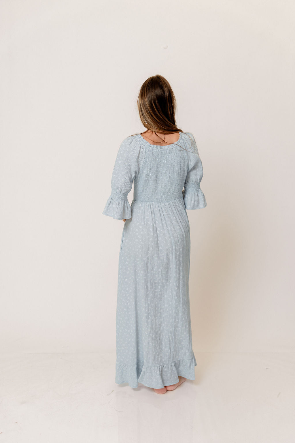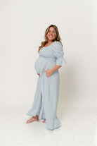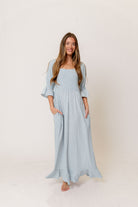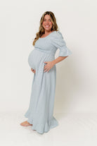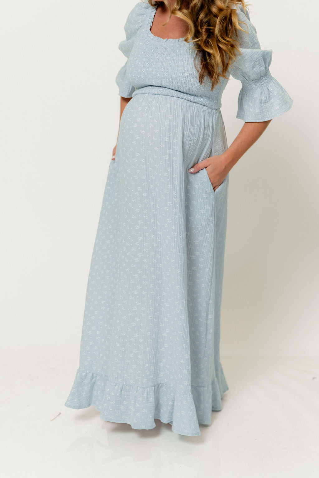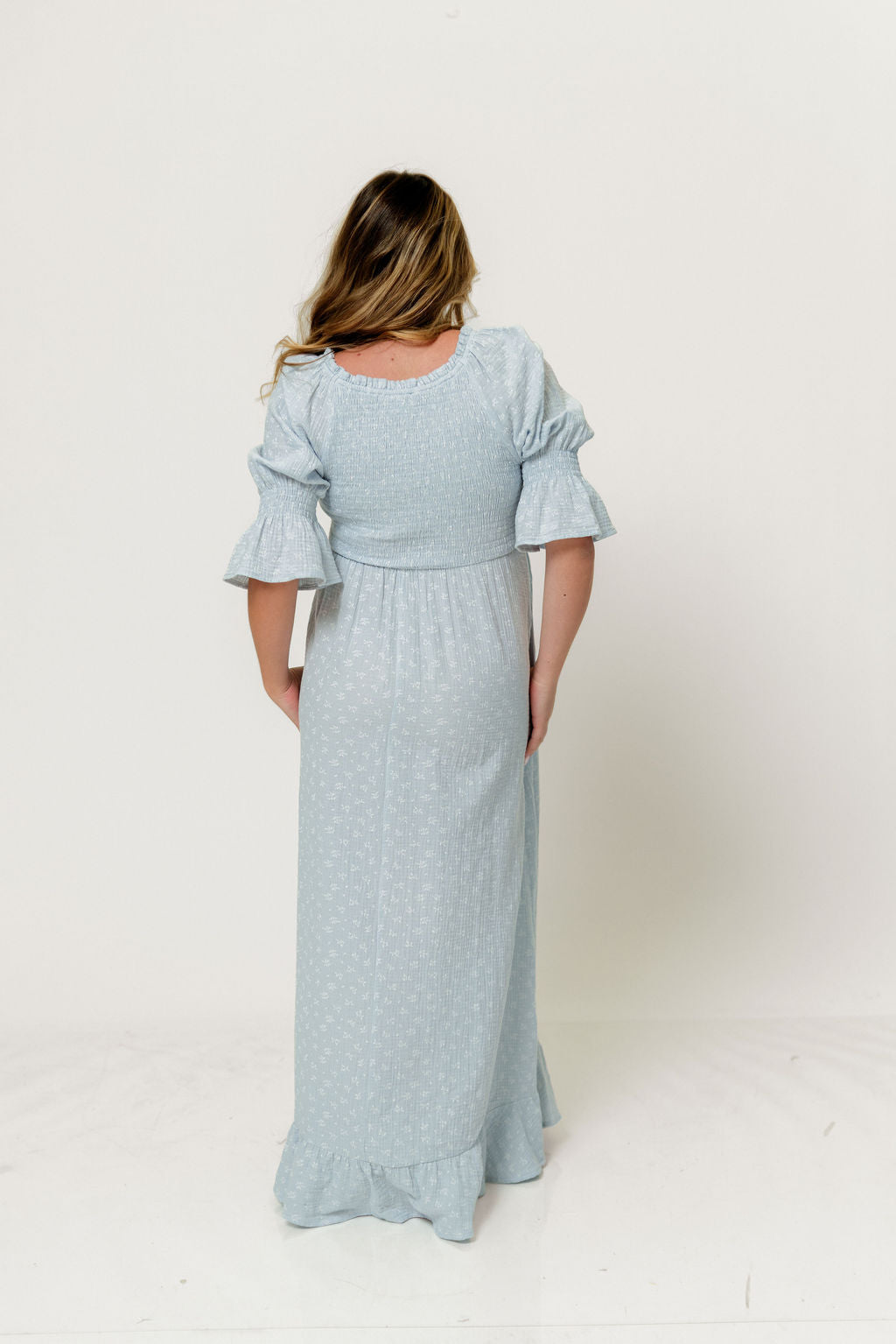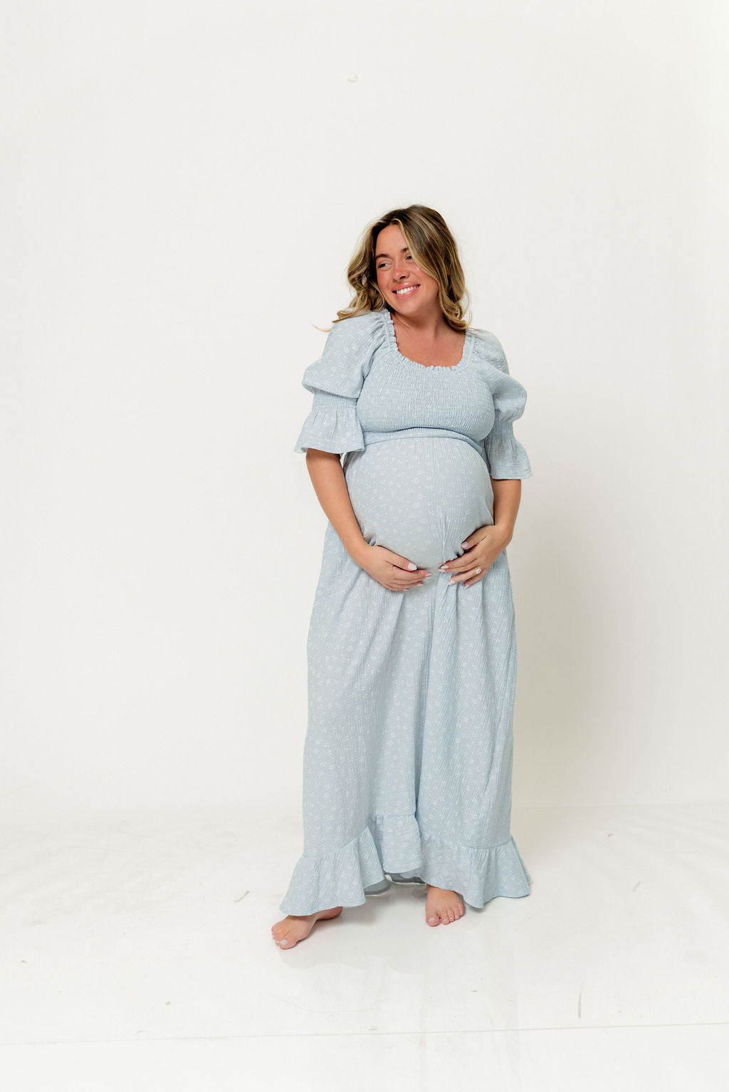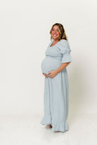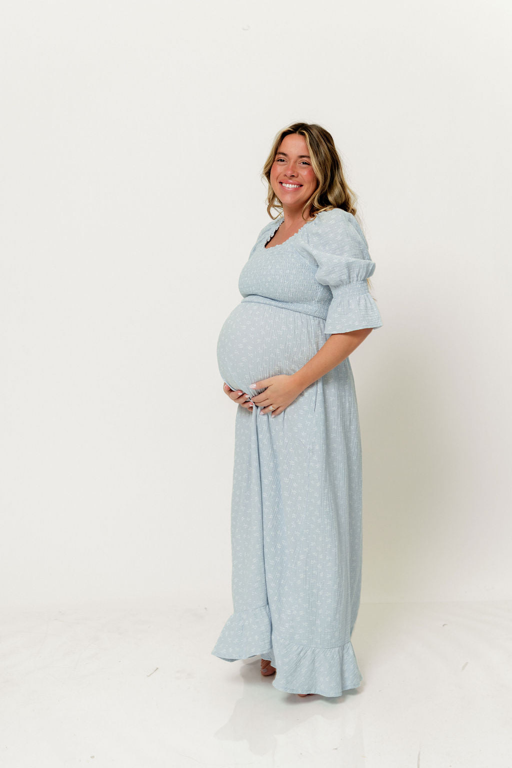 Sienna 100% Cotton Puff Sleeve Maxi Dress in Baby Blue Foliage - Bump Friendly