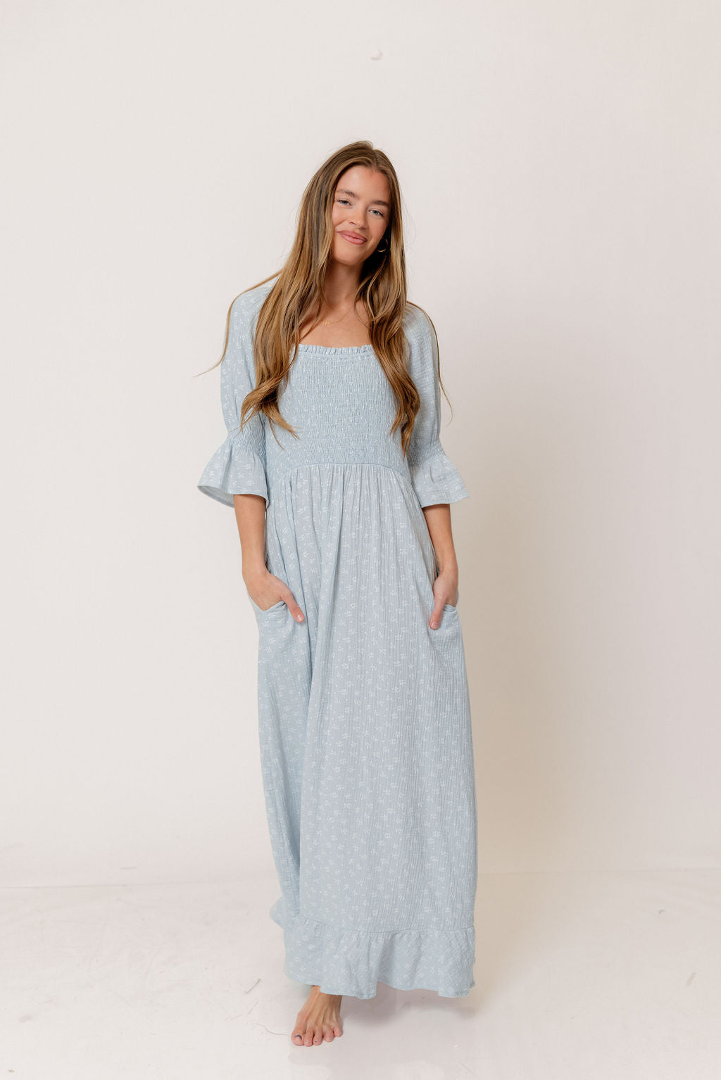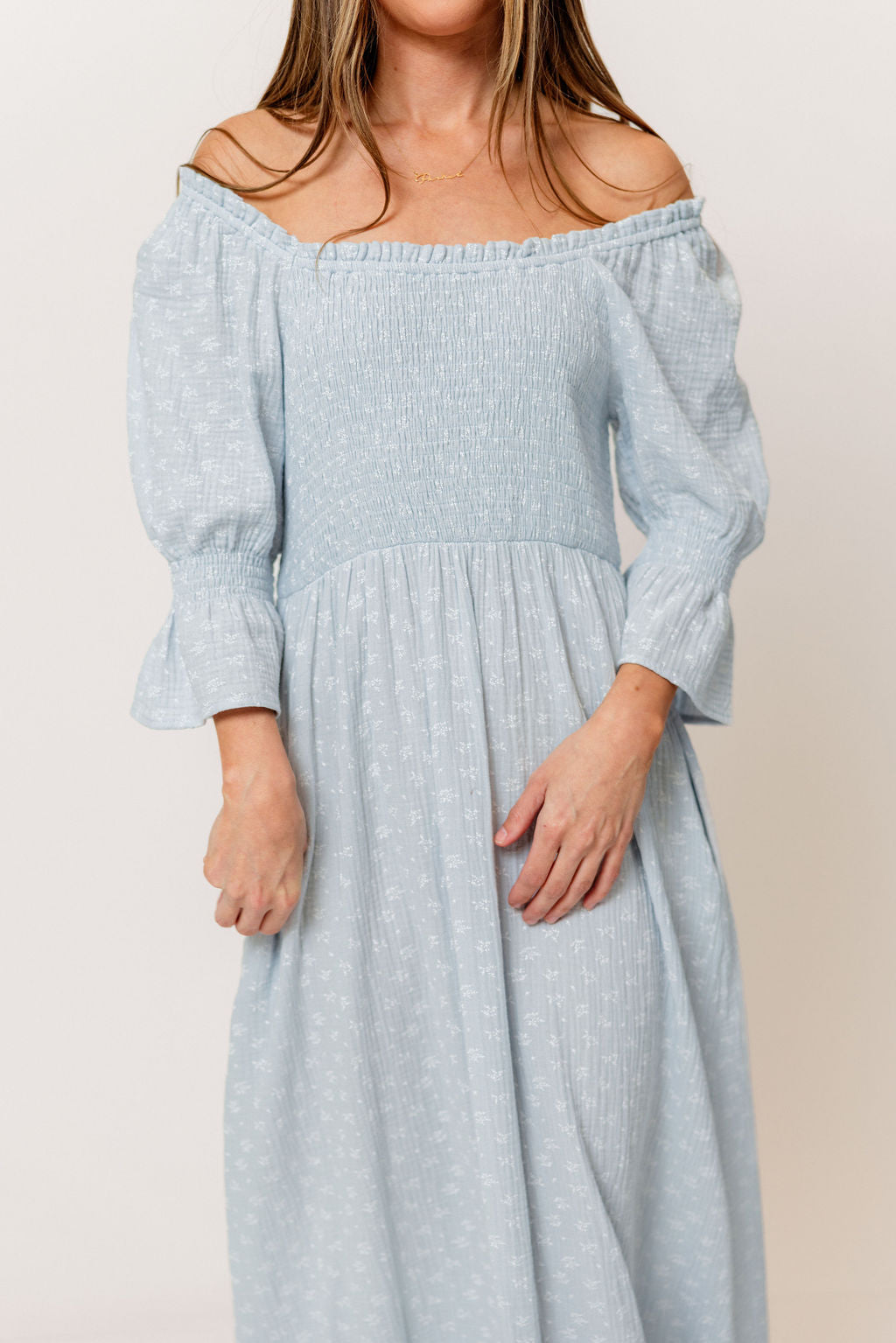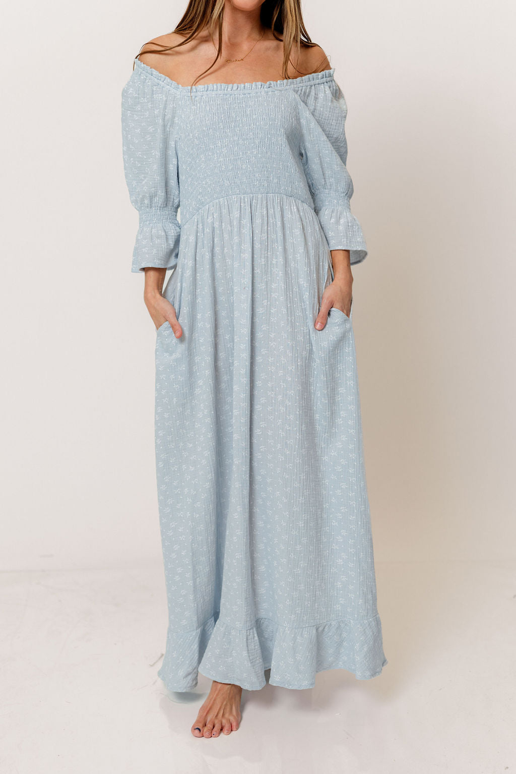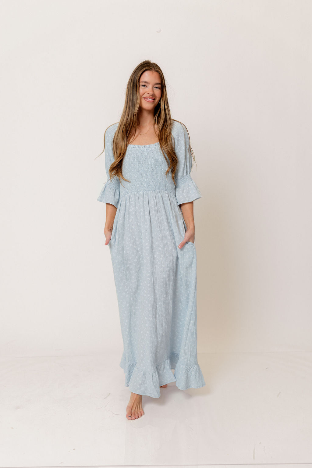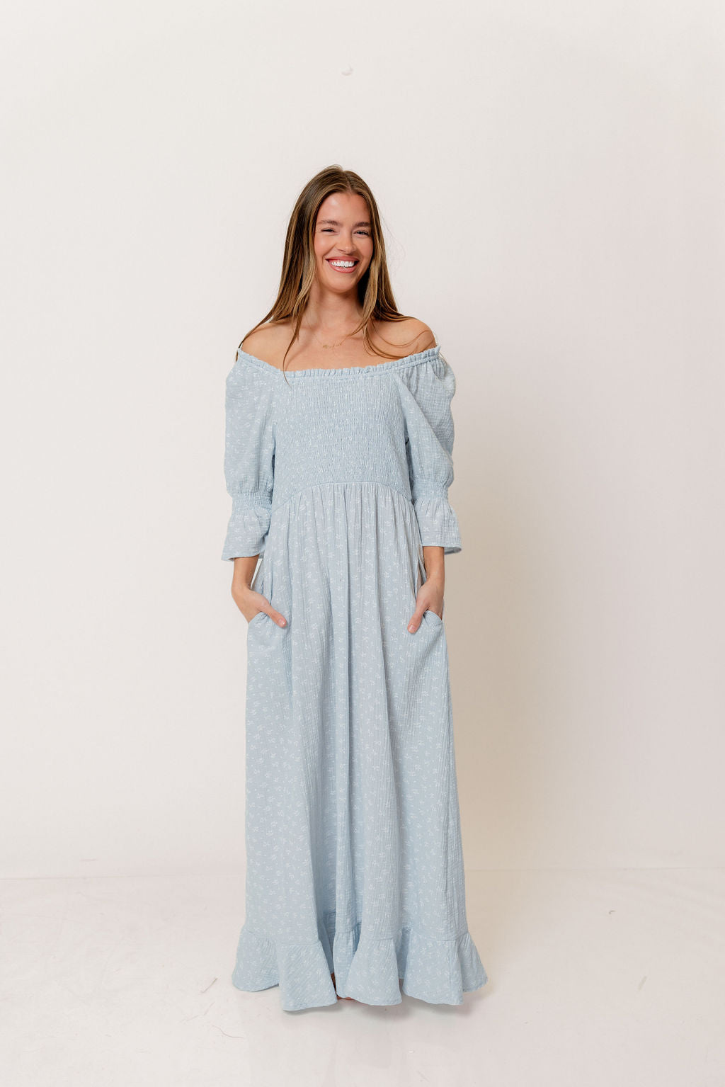 Sienna 100% Cotton Puff Sleeve Maxi Dress in Baby Blue Foliage - Bump Friendly