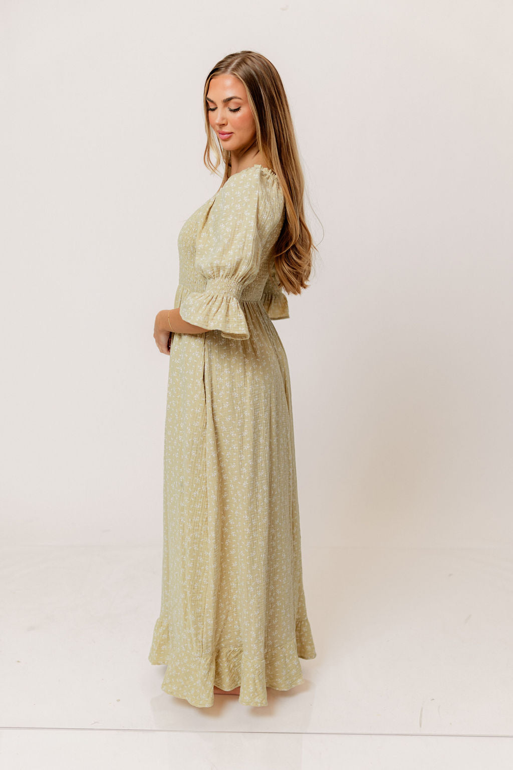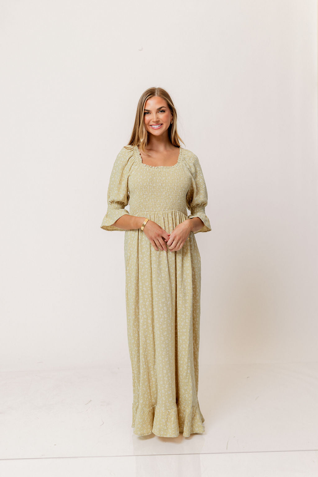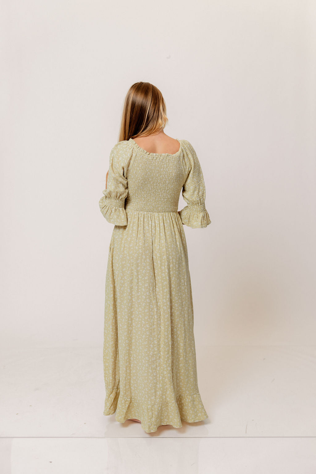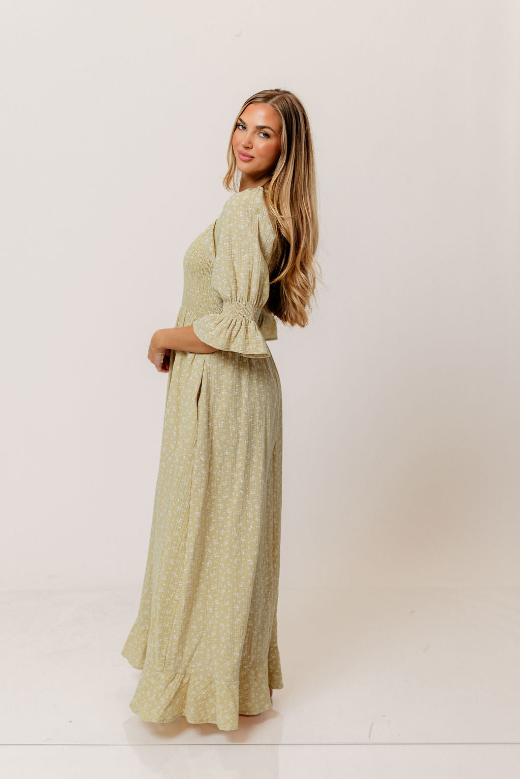 Sienna 100% Cotton Puff Sleeve Maxi Dress in Green Haze Foliage - Bump Friendly *2/12 PRE-ORDER*