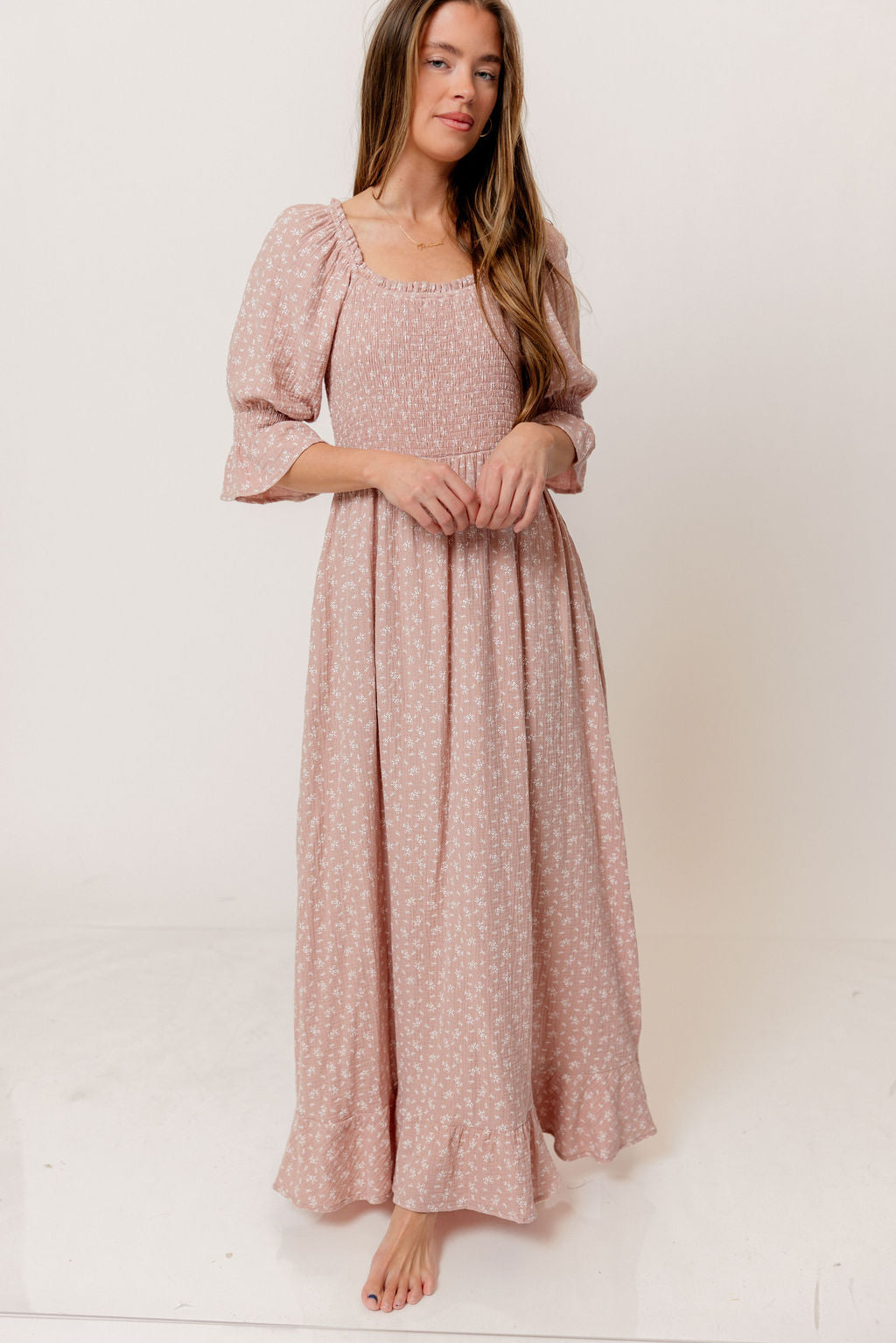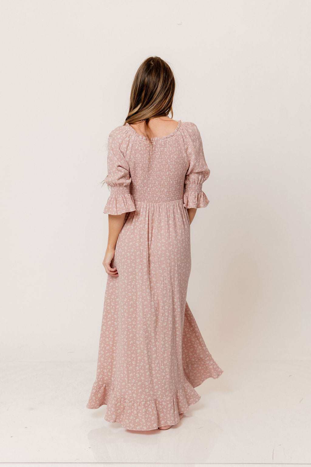 Sienna 100% Cotton Puff Sleeve Maxi Dress in Rose Foliage - Bump Friendly *2/12 PRE-ORDER*