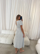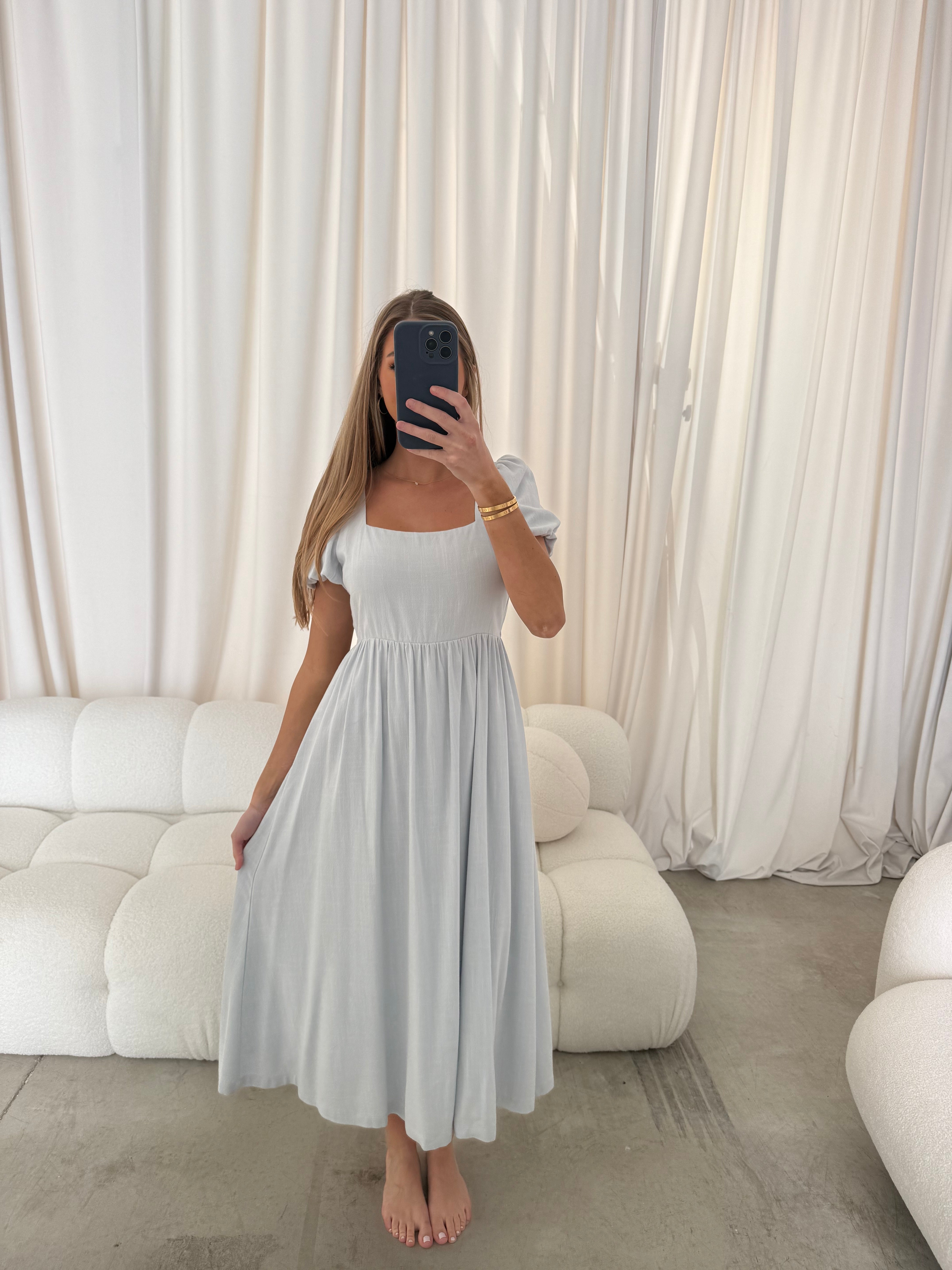 Ainsley Square Neck Midi Dress with Puffed Sleeves in Baby Blue - Bump Friendly
