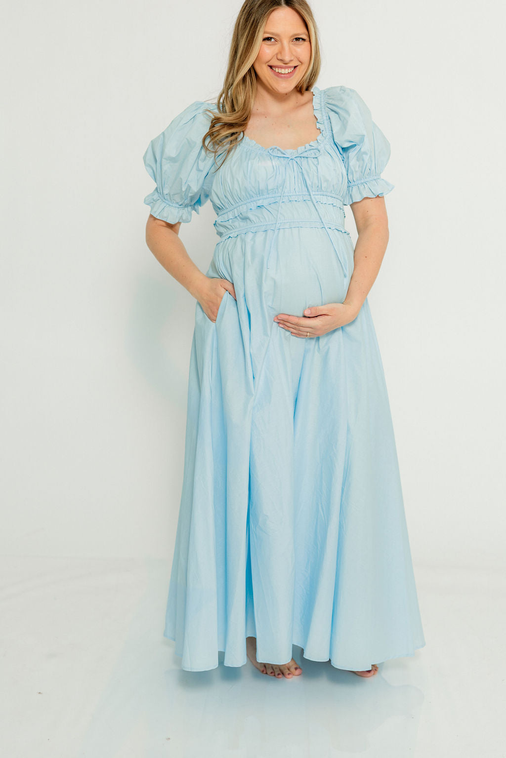 Sydnee Cotton Maxi Dress in Light Blue - Bump Friendly