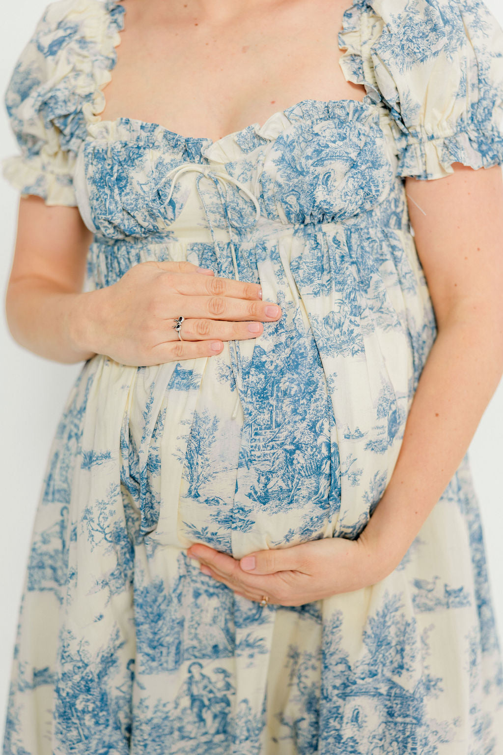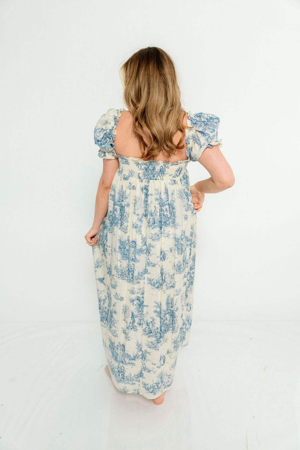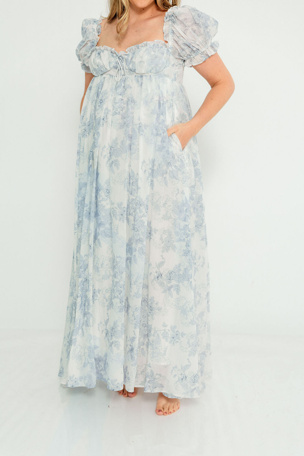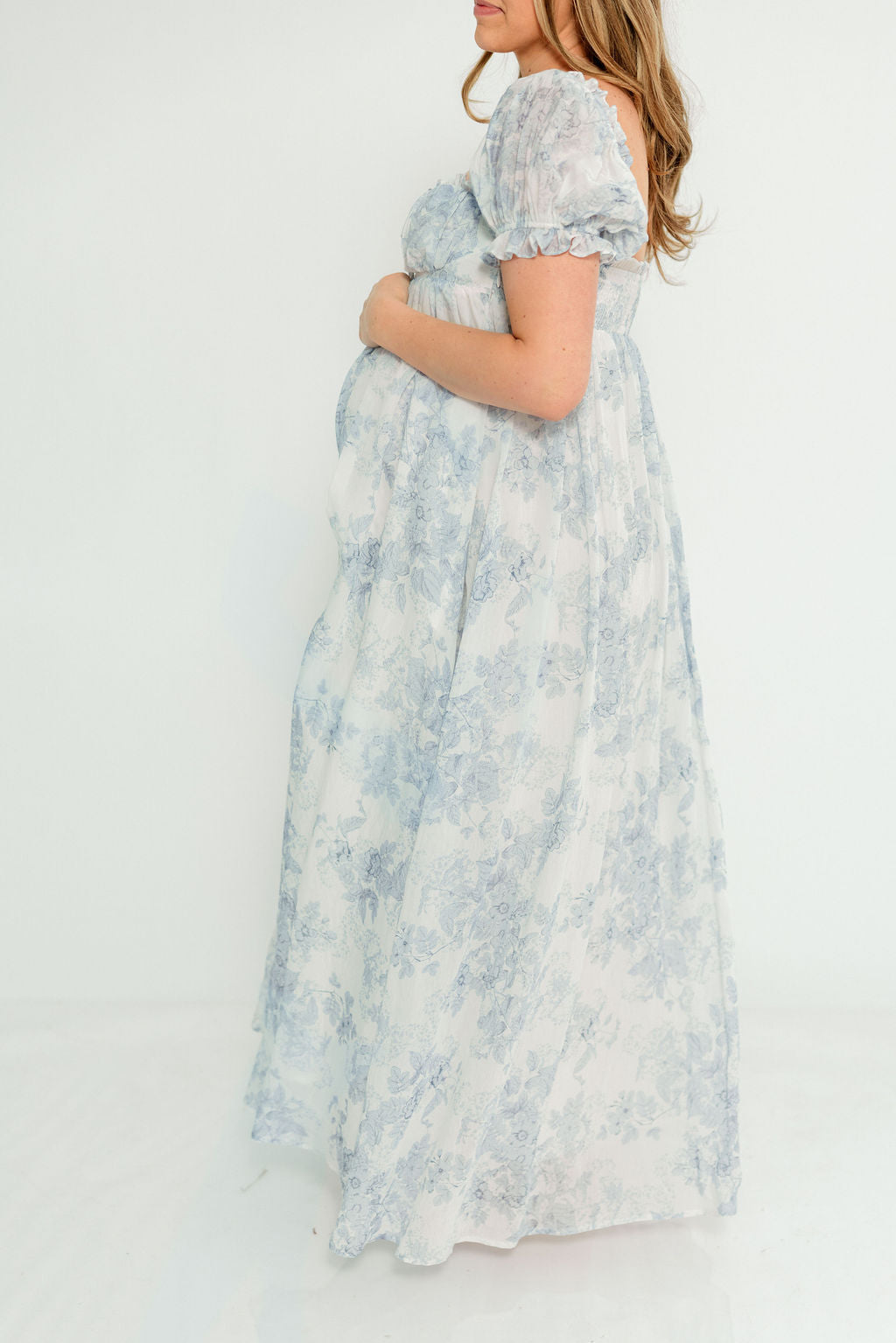 Olivia 100% Cotton Maxi Dress in Blue Toile - Bump Friendly