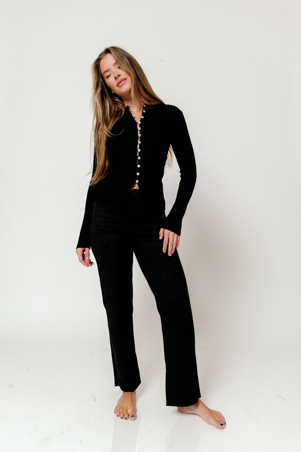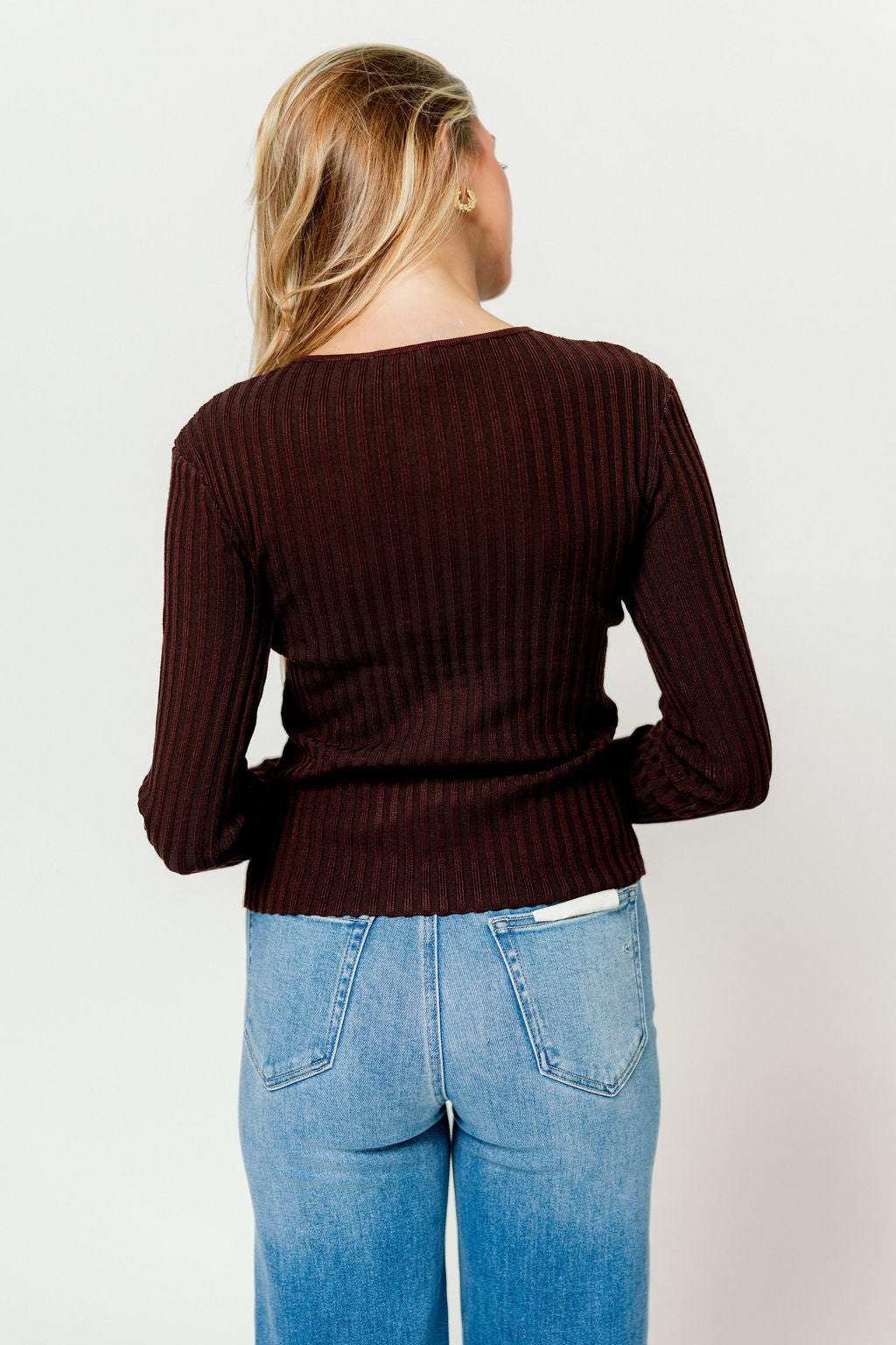 Kayla Fitted Hem Knit Cardigan Top in Brown