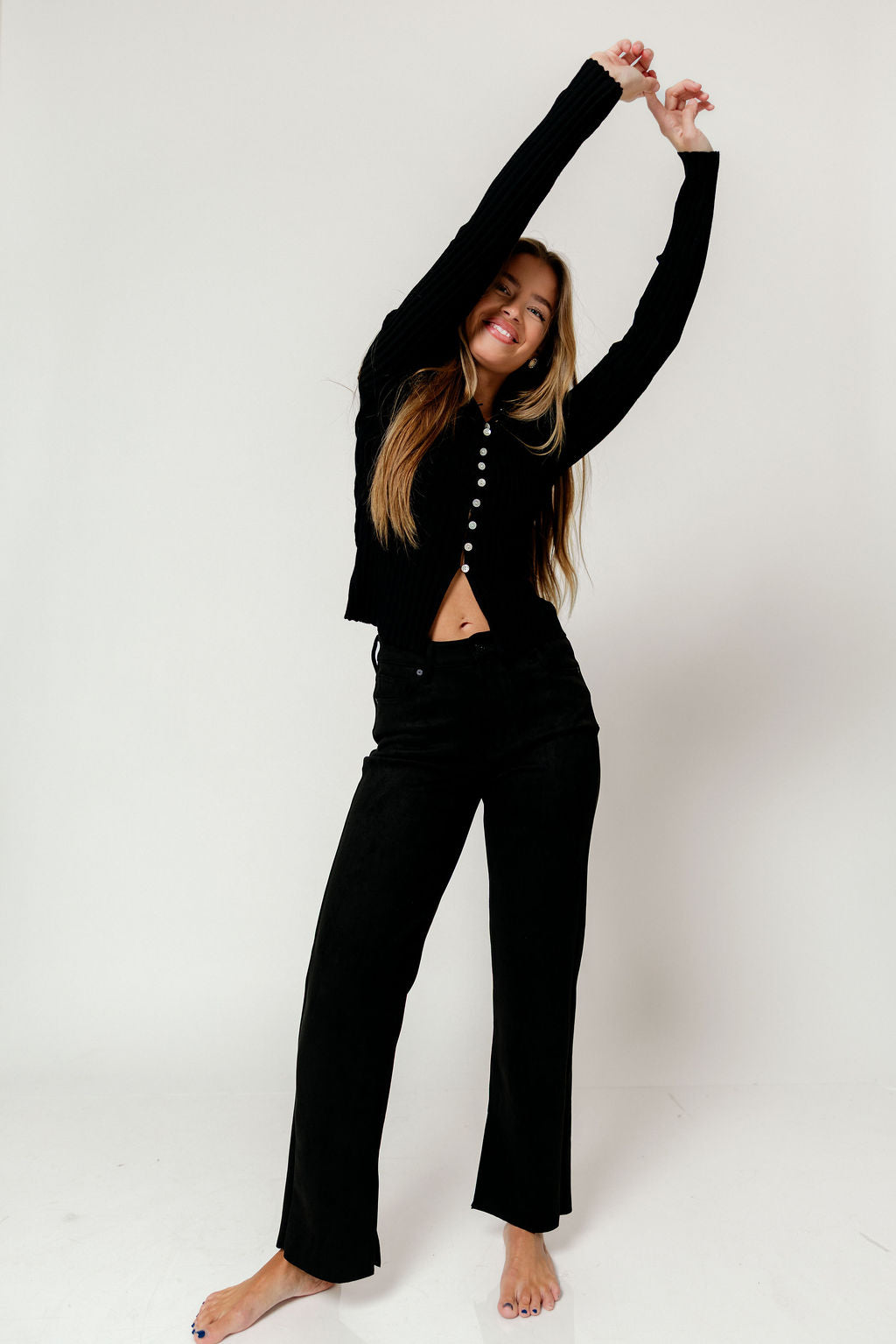 Chutney Button-Up Half Sleeve Knit Cardigan Top in Navy