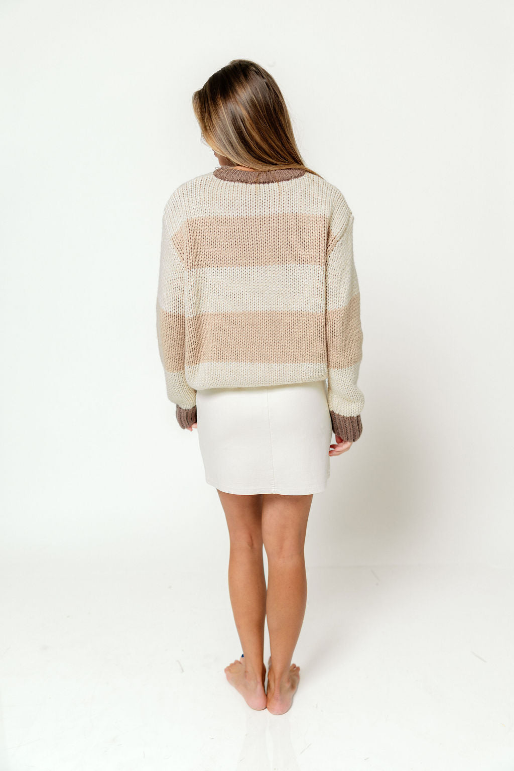 Rae Striped Cardigan Top in Brown/Oat/Butter