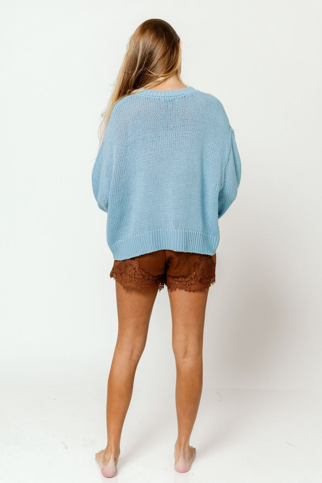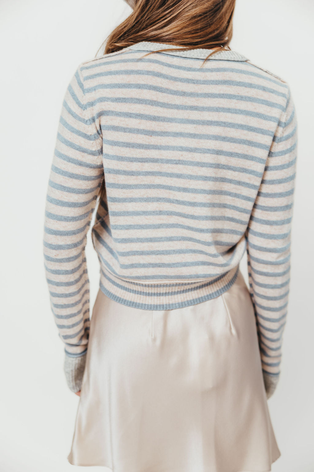 Rae Striped Cardigan Top in Sky Blue/Oat/Grey