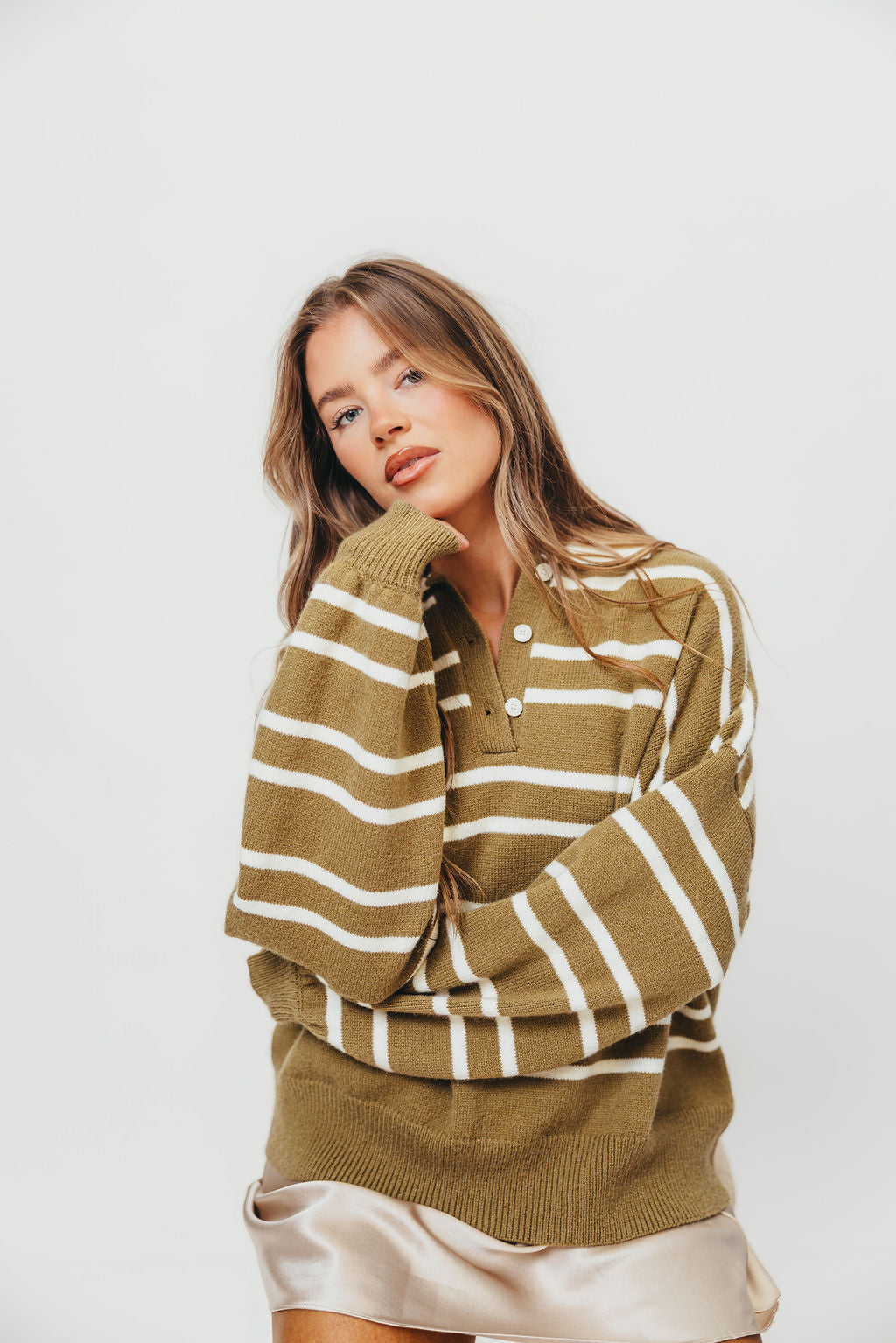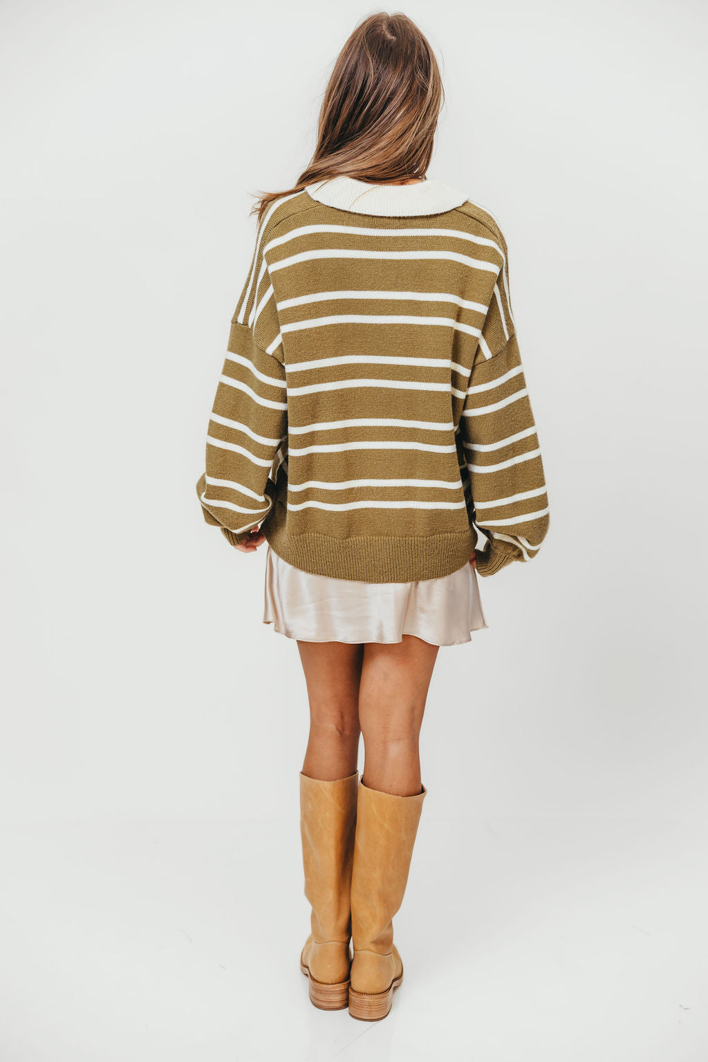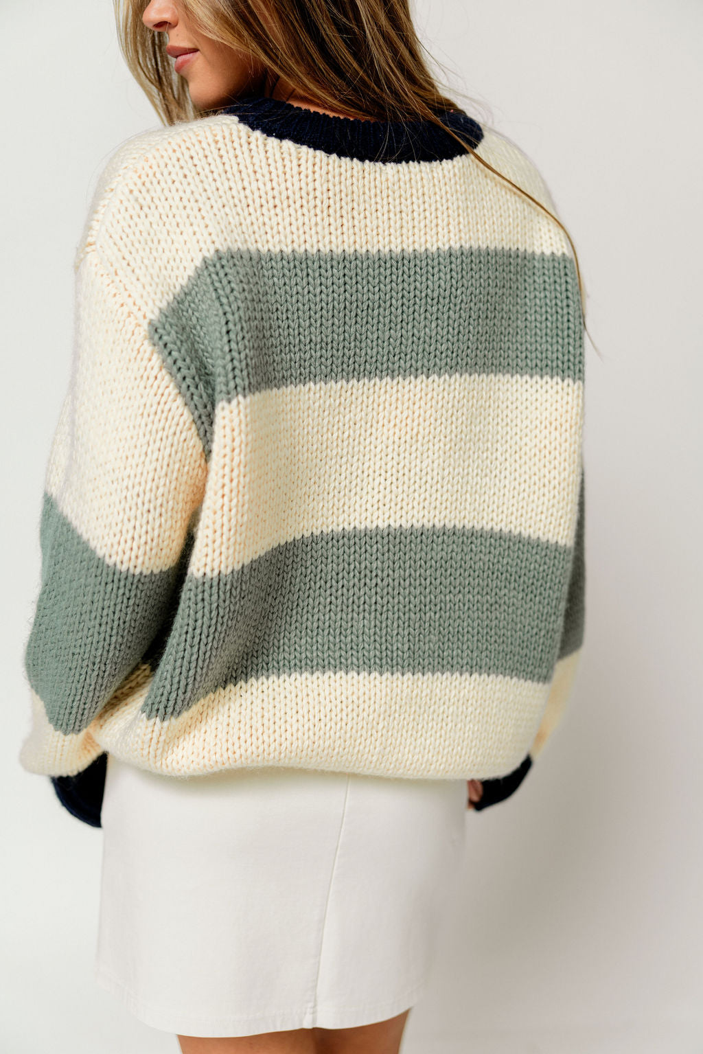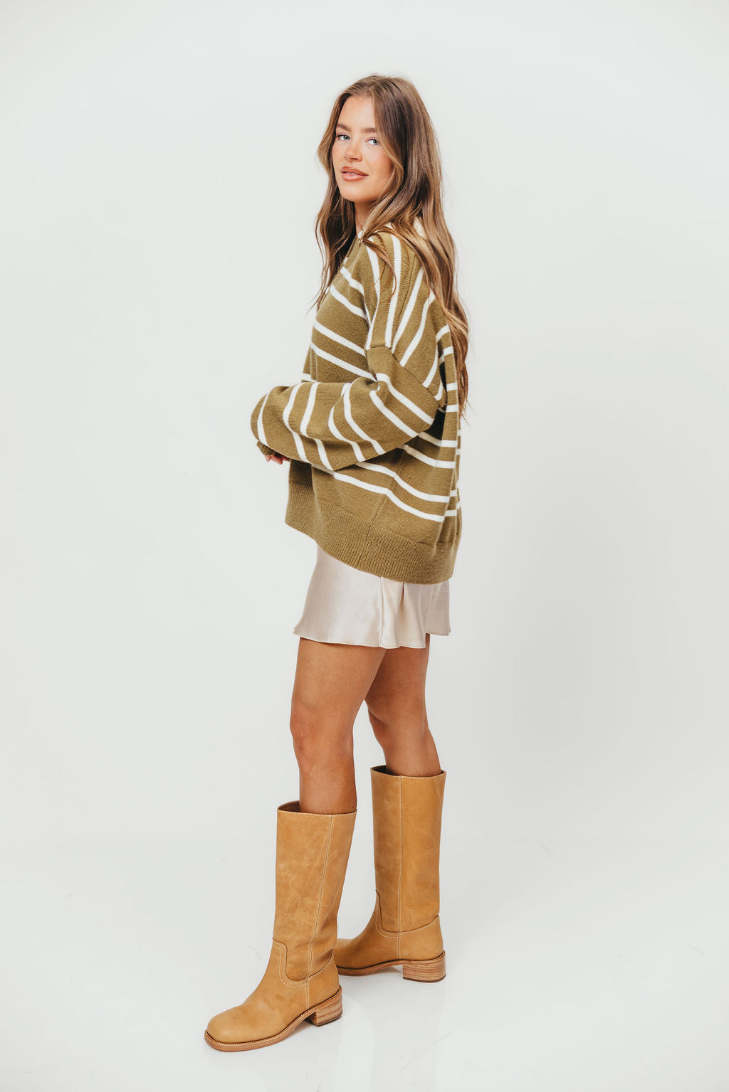 Rae Striped Cardigan Top in Olive/Oat/Grey