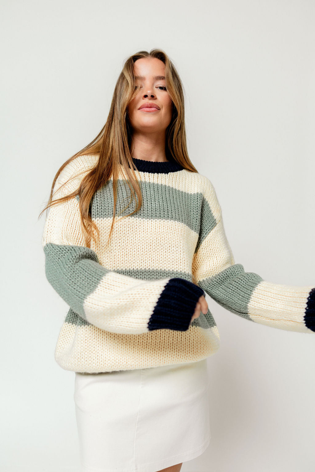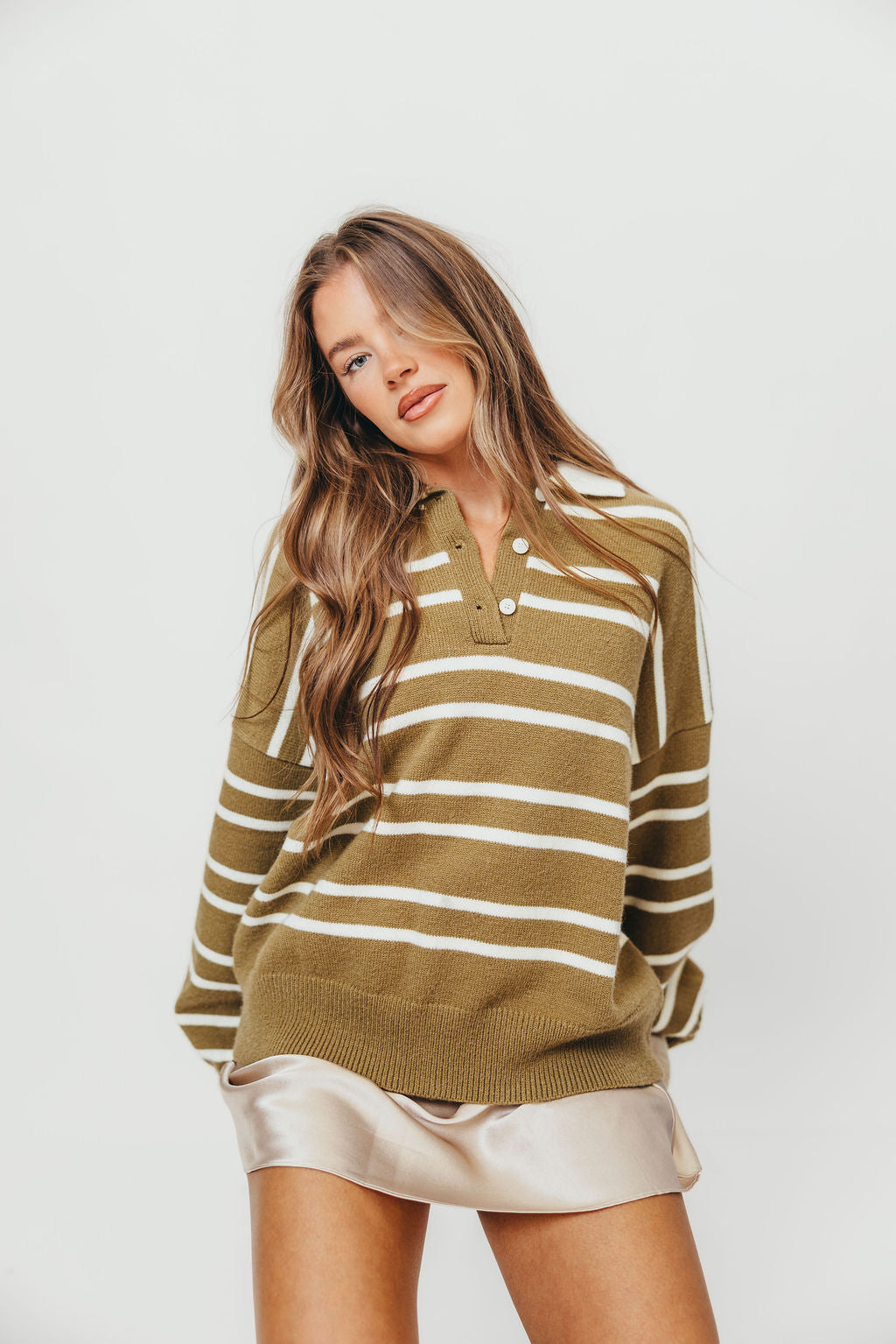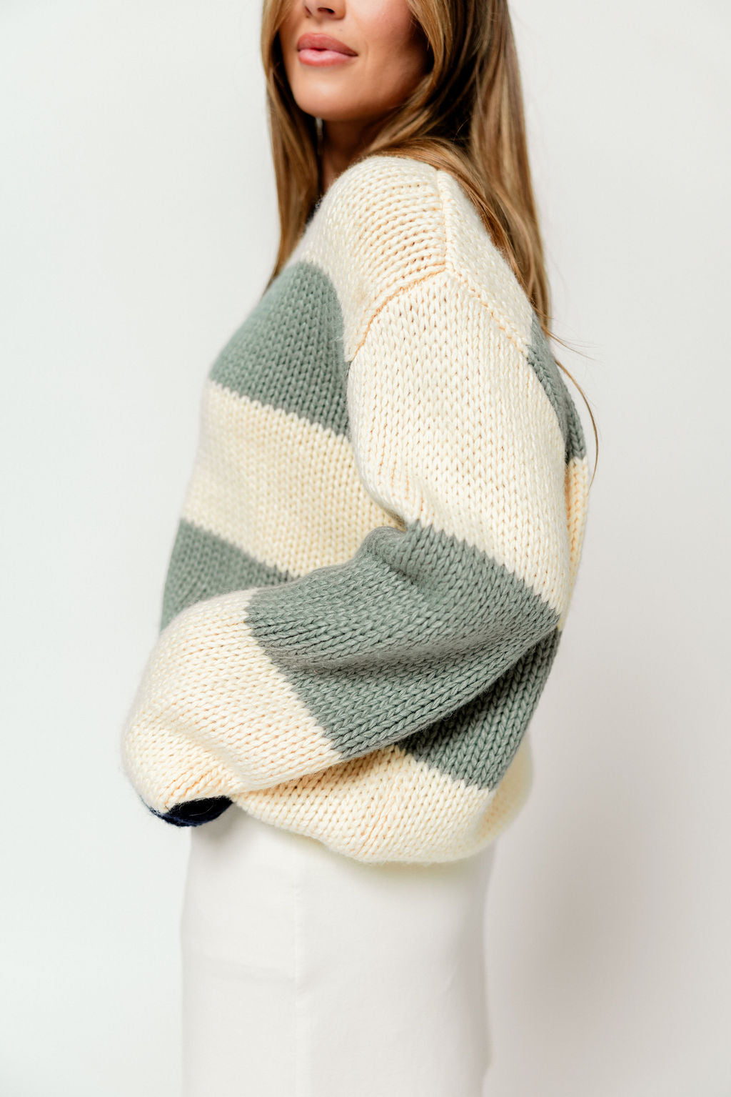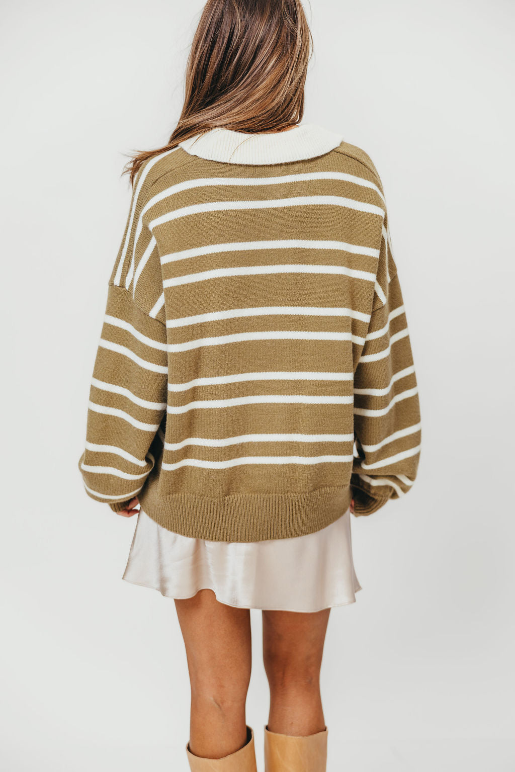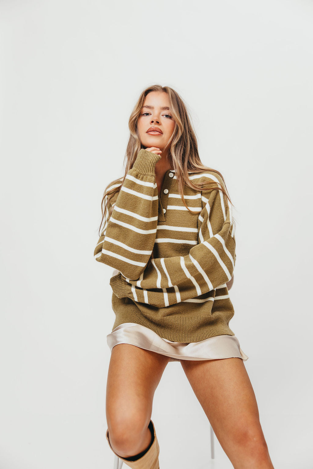 Rae Striped Cardigan Top in Olive/Oat/Grey