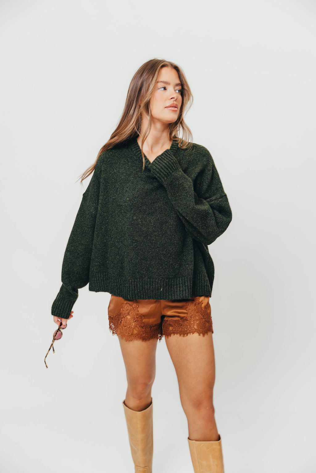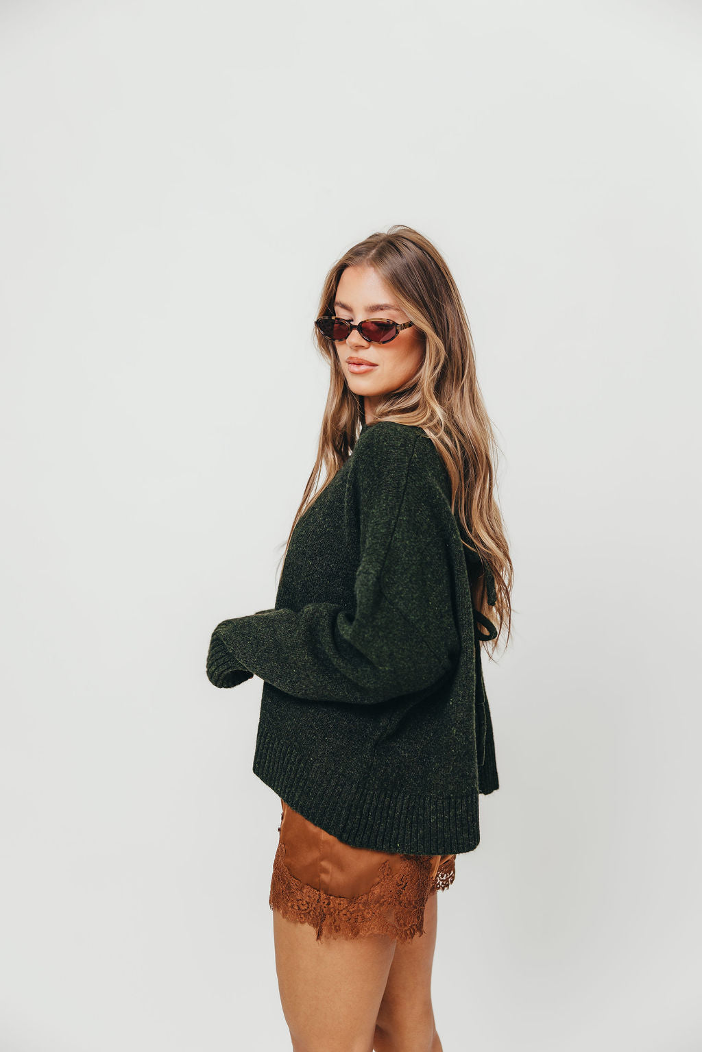 Chutney Button-Up Half Sleeve Knit Cardigan Top in Hunter Green *Final-Sale*
