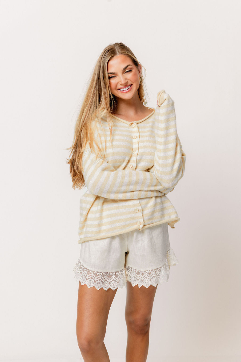 Ciela Striped Cardigan Top in Natural