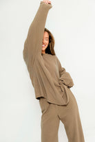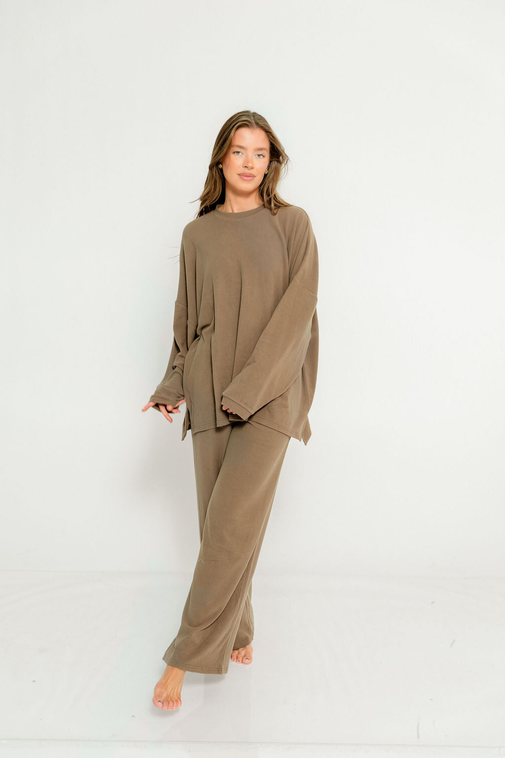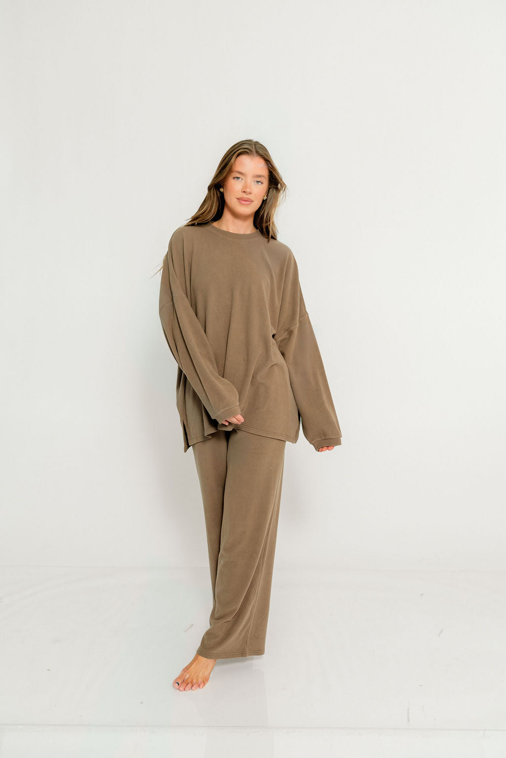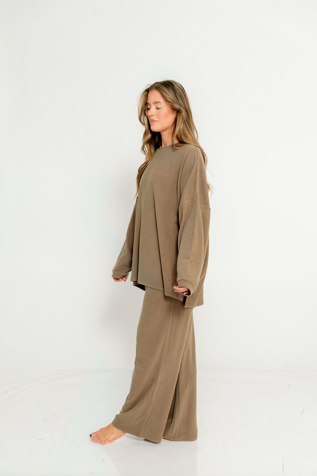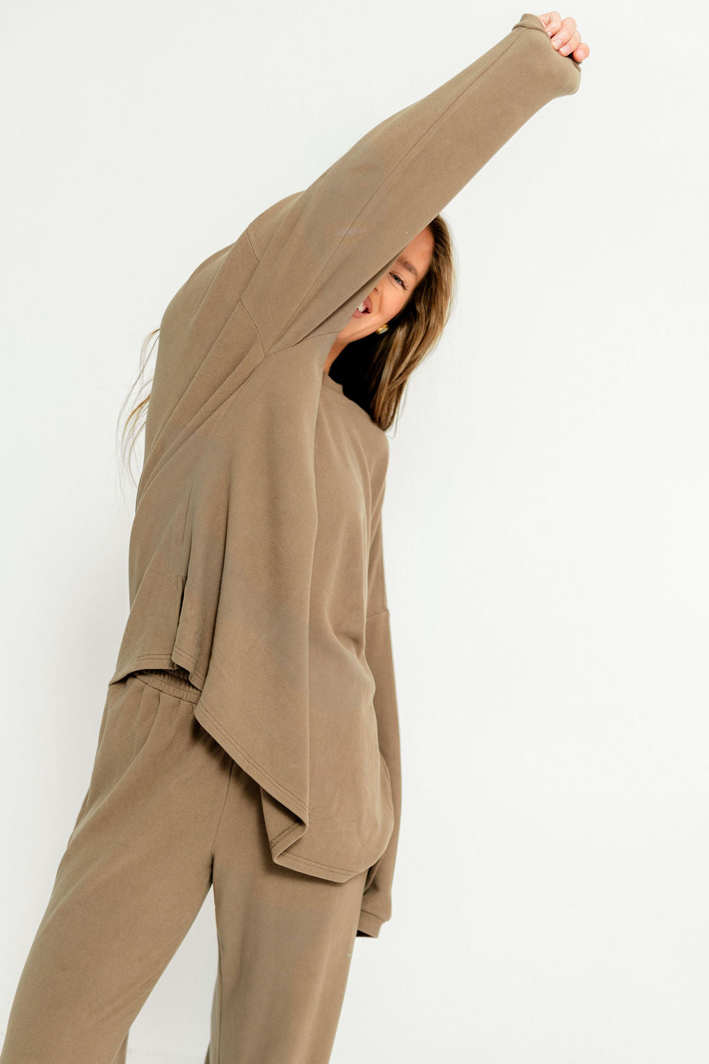 Naomi Oversized Fleece Long Sleeve Top in Olive Brown - Bump Friendly *2/4 PRE-ORDER*