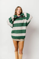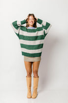 Meet the sweater you’ll live in all season long. The Cosmo is arriving just in time for cozy weather, it is a MUST-HAVE! With its ultra-cozy oversized fit and classic stripe design, the Cosmo is slouchy and sweet and just the thing for pairing with tall boots and a sherpa crossbody.