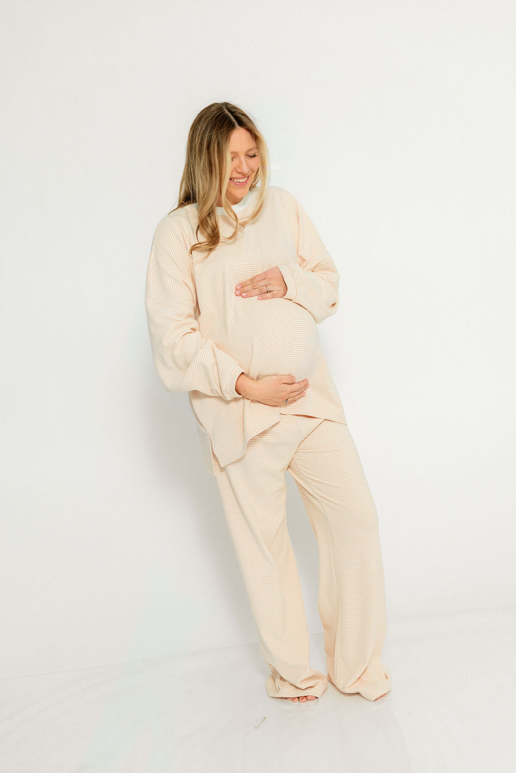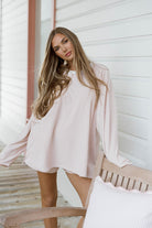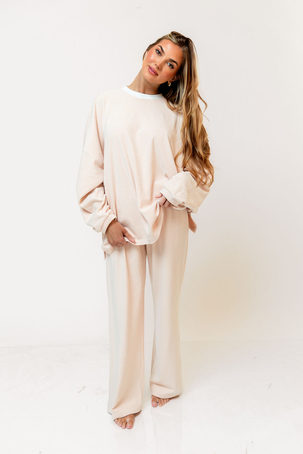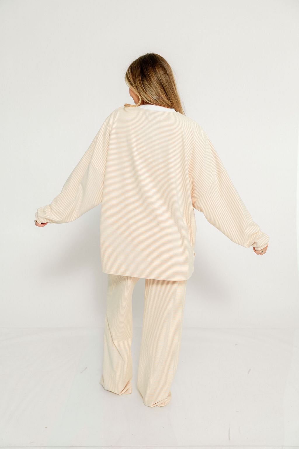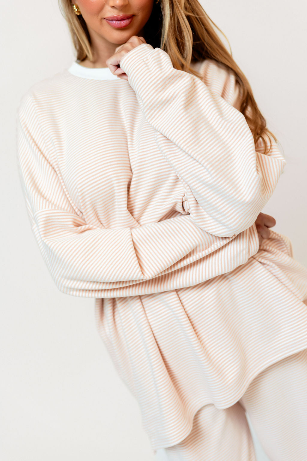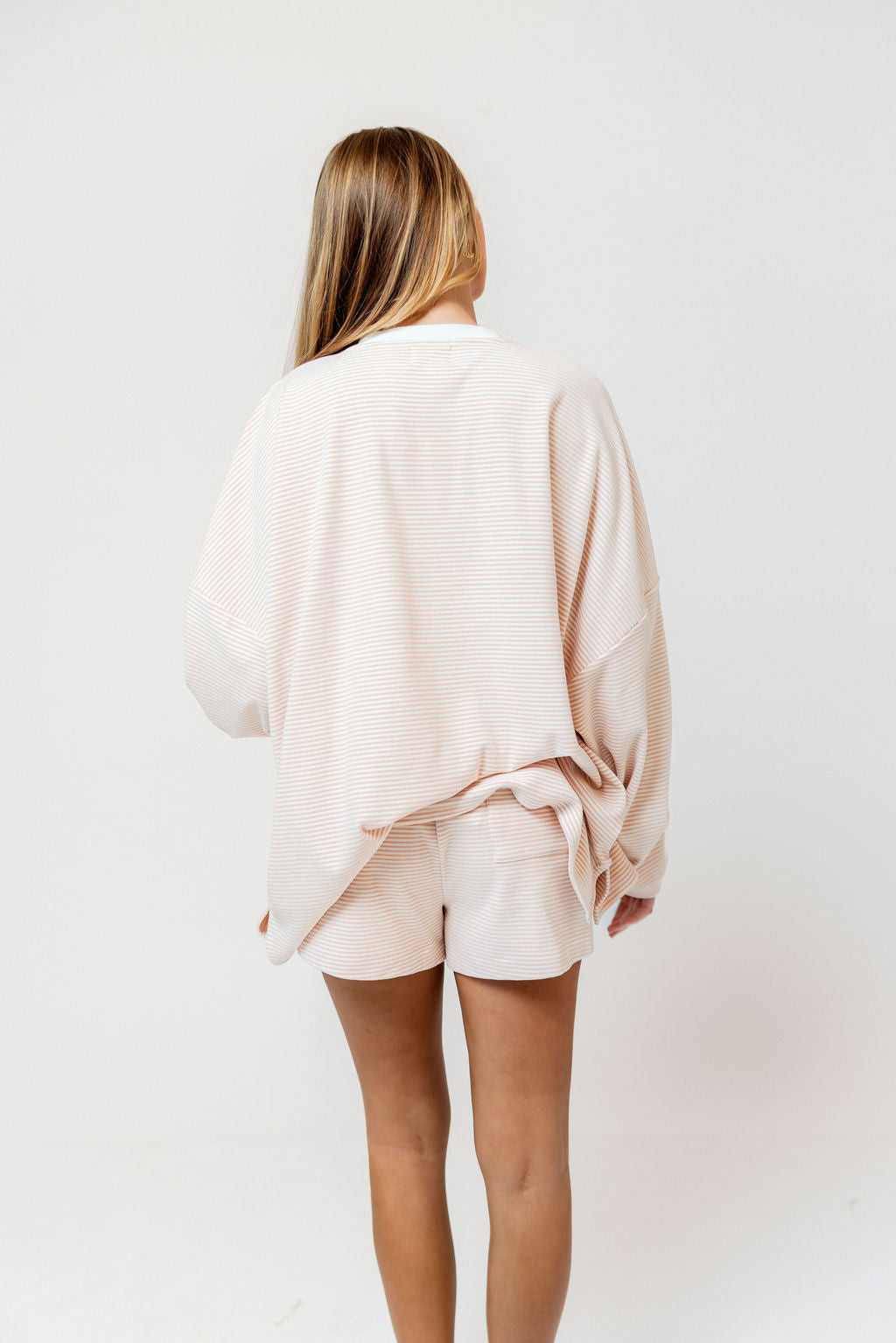 Naomi Striped Oversized Fleece Long Sleeve Top in Blush - Bump Friendly *2/27 PRE-ORDER*
