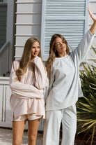 Get cozy (and trendy) with our new Naomi Top! This top is oversized yet sophisticated, the perfect top for pairing with your favorite boxer shorts or the matching Campbell Fleece Pants.