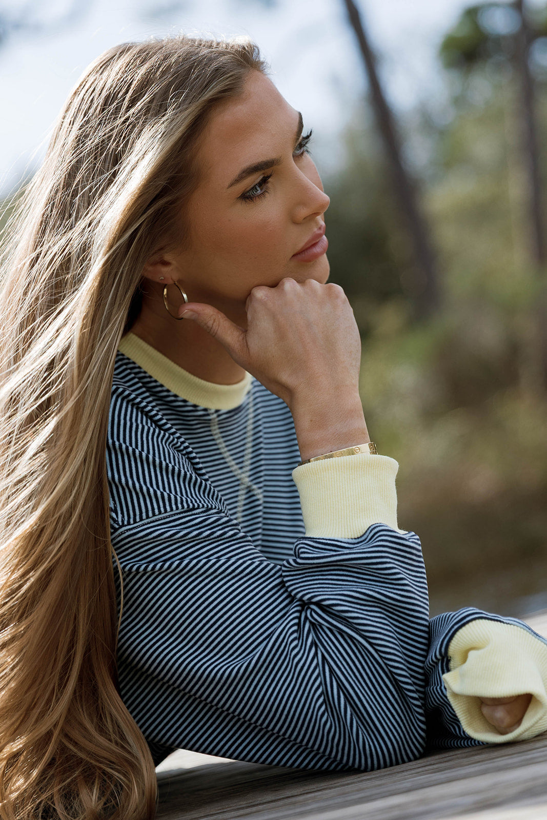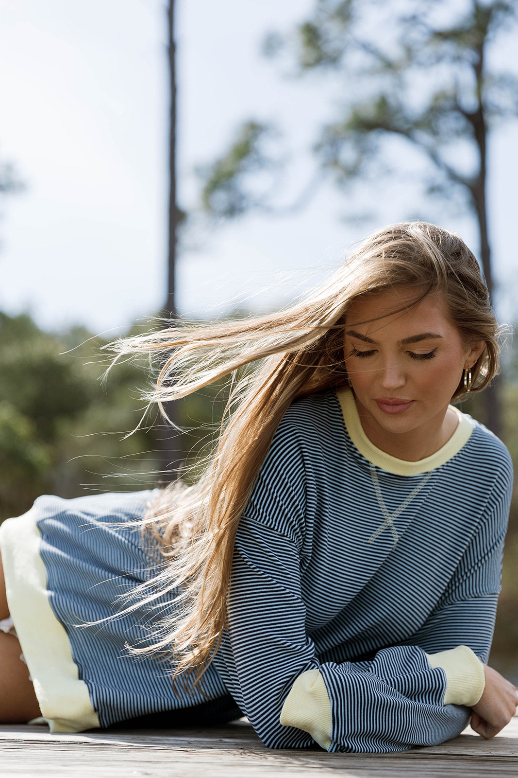 Daisy Pullover in Light Blue-Navy Stripe