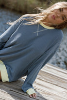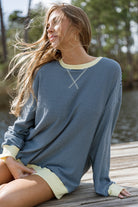 GARMENT DETAILS: Relaxed pullover top with rounded neckline, dropped shoulders, and contrast color trim.