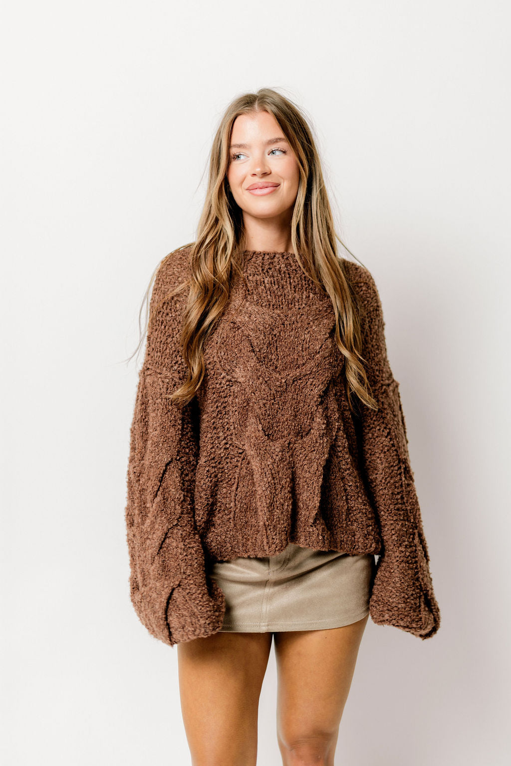 The Moriah Sweater is a yummy knit piece that's a must-have for this season! Its gorgeous rich hue and chunky knit construction make it easy to dress up for date night!