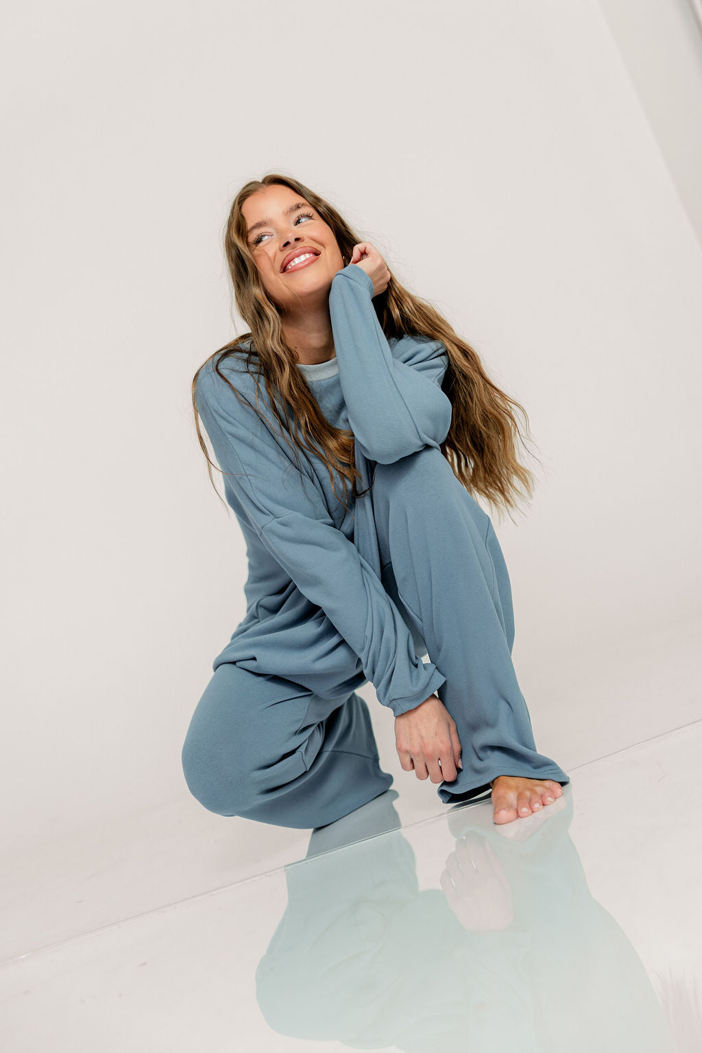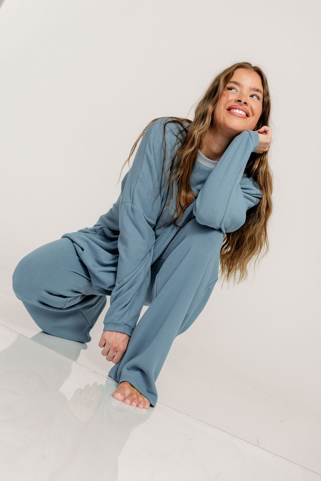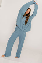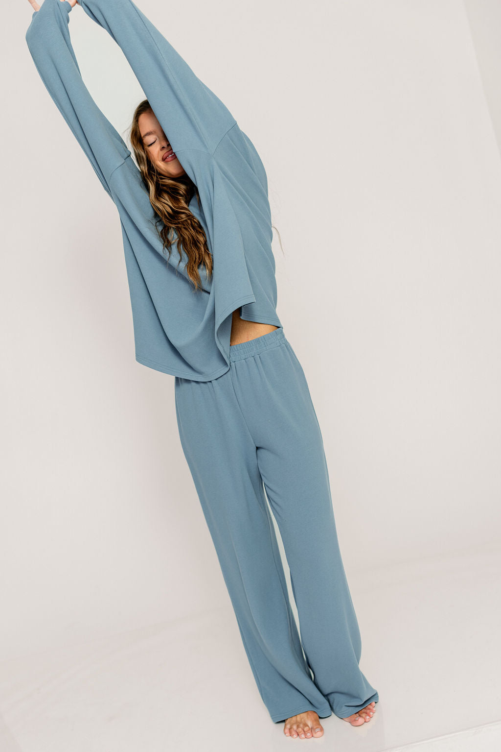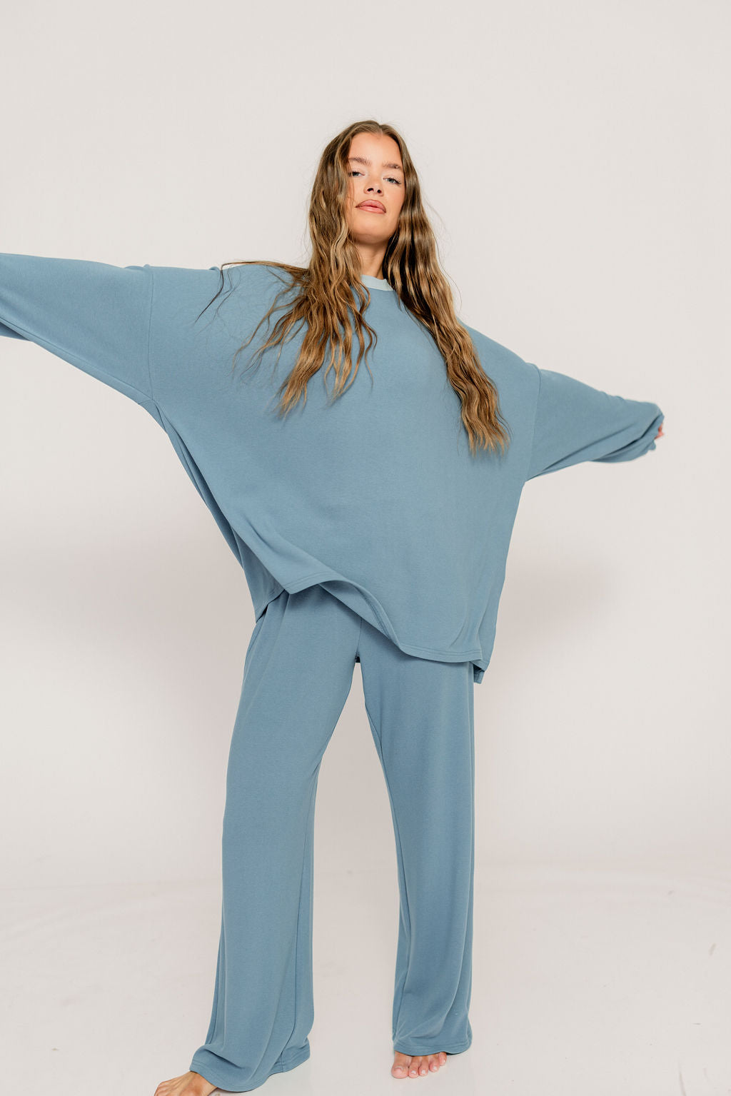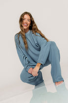 Naomi Oversized Fleece Long Sleeve Top in Slate Blue