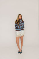 Whether you're wearing this fun striped cardigan solo, layering over a tank or camisole, or styling it tied over your shoulders, the Piper will wear beautifully season after season. We love the bold varsity stripes and rolled edge detail that gives this cardigan a cool, casual vibe.