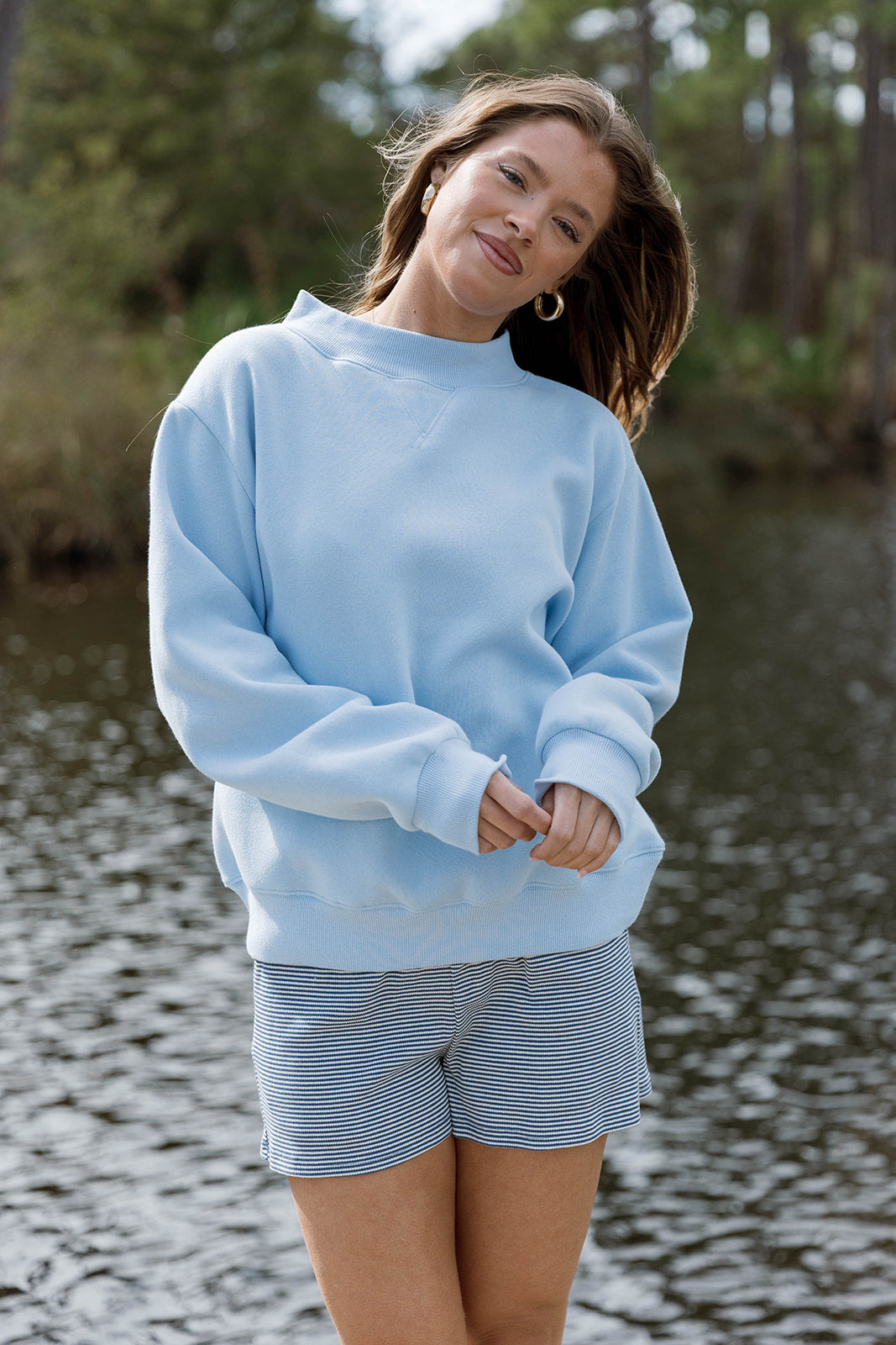 Scout Wide Neck Fleece Sweatshirt in Baby Blue
